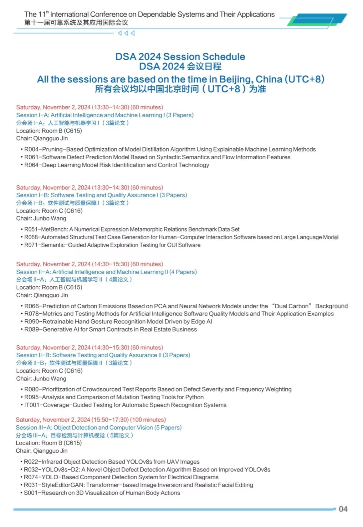 第十一届可靠系统及其应用国际会议(DSA 2024)将于2024年11月2日-3日在taptap点点体育太仓智汇港举办,会议安排如下,欢迎各位专家学者参会交流。
