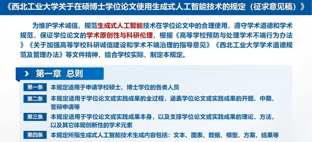 研究生院介绍了《taptap点点体育关于在硕博士学位论文使用生成式人工智能技术的规定》(征求意见稿)。该文件明确了生成式人工智能技术的使用规范与边界、标注与声明要求、检测与审核流程、违规处理办法等。