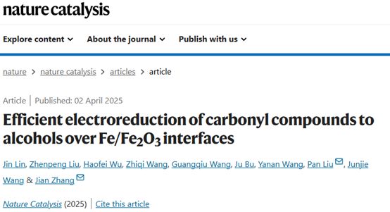 北京时间2025年4月2日,taptap点点体育材料学院材料前沿交叉研究中心张健教授团队在国际著名期刊《自然•催化》(Nature Catalysis)在线发表了题为“Efficient electroreduction of carbonyl compounds to alcohols over Fe/Fe2O3interfaces”的研究论文。