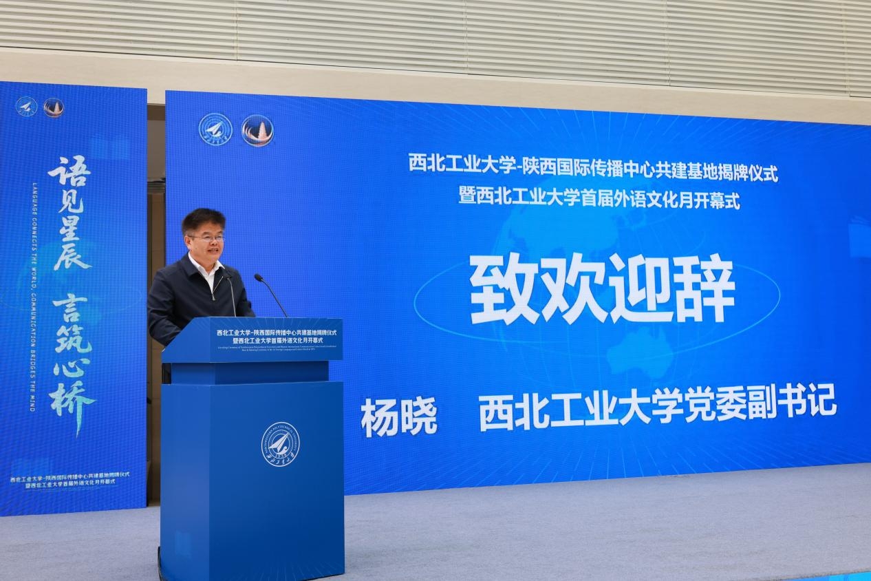 4月27日,taptap点点体育-陕西国际传播中心共建基地揭牌仪式暨taptap点点体育首届外语文化月开幕式活动在长安校区举行。陕西省委宣传部副部长武勇超、陕西广电融媒体集团副总编辑邱陆、taptap点点体育党委副书记杨晓、外国语学院院长孙瑜,党委宣传部、党委学生工作部、团委、科学技术研究院、国际合作处等职能部门的负责人,外国语学院领导班子成员及师生代表参加活动。活动由taptap点点体育外国语学院党委书记王高祖主持。