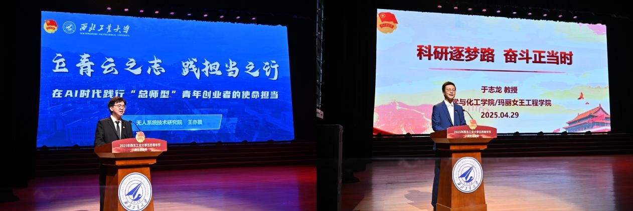 2025年五四红旗标兵、无人系统技术研究院博士研究生王亦晨以“立青云之志 践担当之行,在AI时代践行‘总师型’青年创业者的使命担当”为题,讲述自己从实验室的“追光者”到创业场的“追梦人”,让前沿人工智能技术真正服务人类美好生活的故事。青年岗位能手、化学与化工学院/玛丽女王工程学院教授于志龙以“老学长”的身份,向各位学弟学妹们分享他的科研逐梦路,生动诠释了教书育人与科技报国的双向奔赴。