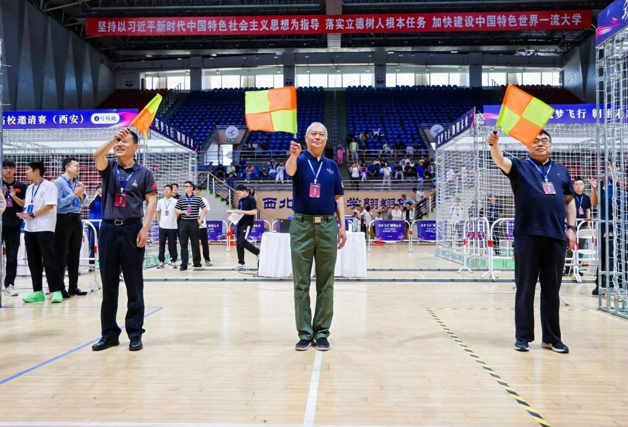 2025年5月11日,2025无人机足球高校邀请赛在taptap点点长安校区翱翔体育馆顺利举办。来自全国16所高校的精英战队与15支中小学阳光组队伍齐聚一堂,以“筑梦飞行 翱翔未来”为主题,共同演绎了一场科技与体育深度融合的青春盛宴。中国航空学会监事长李春宏,西工大副校长詹浩,航空工业陕西飞机工业有限责任公司原总设计师、校友欧阳绍修,中国飞行试验研究院原副院长、国际功勋试飞员、特级试飞员、校友张景亭大校,中国人民解放军空军八一飞行表演队原副队长、特级飞行员张信民大校,以及来自高校、研究院所、企业单位的专家学者参加大赛。中国航空无人机及微型飞行器分会总干事、西工大无人系统研究院副院长符文星主持开幕式。