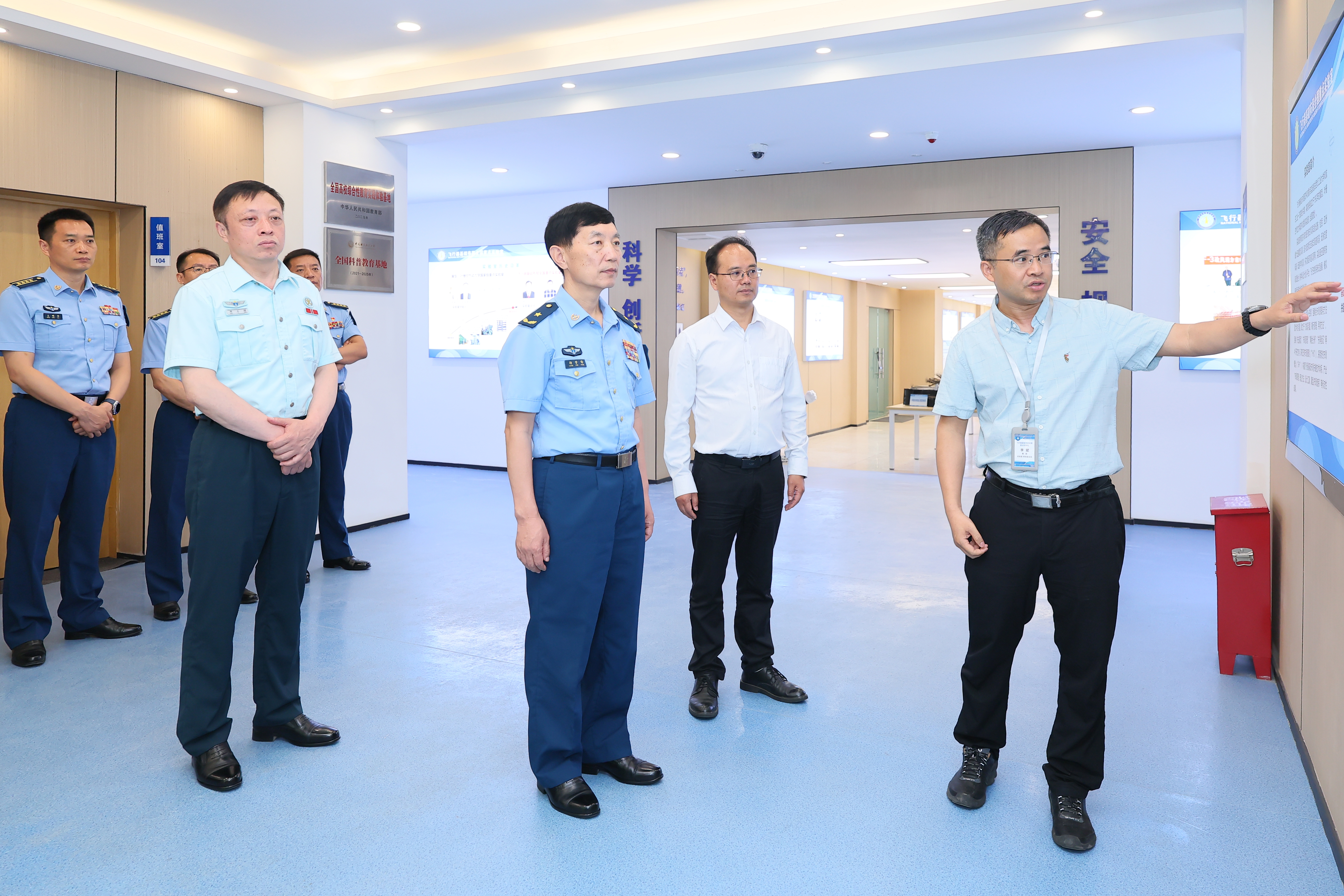 签约仪式前,杨学锋一行参观调研了学校科技馆、飞行器基础布局全国重点实验室。