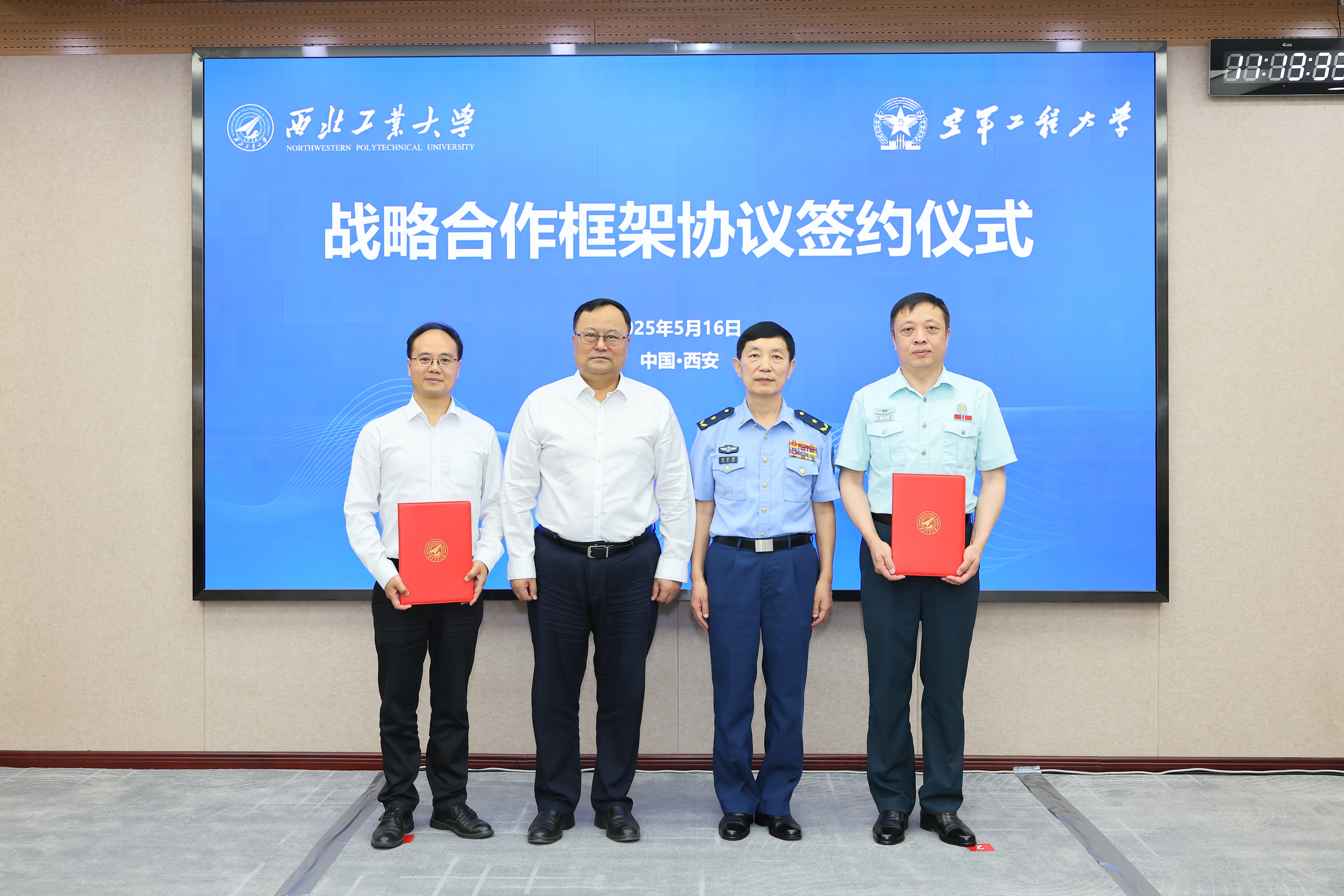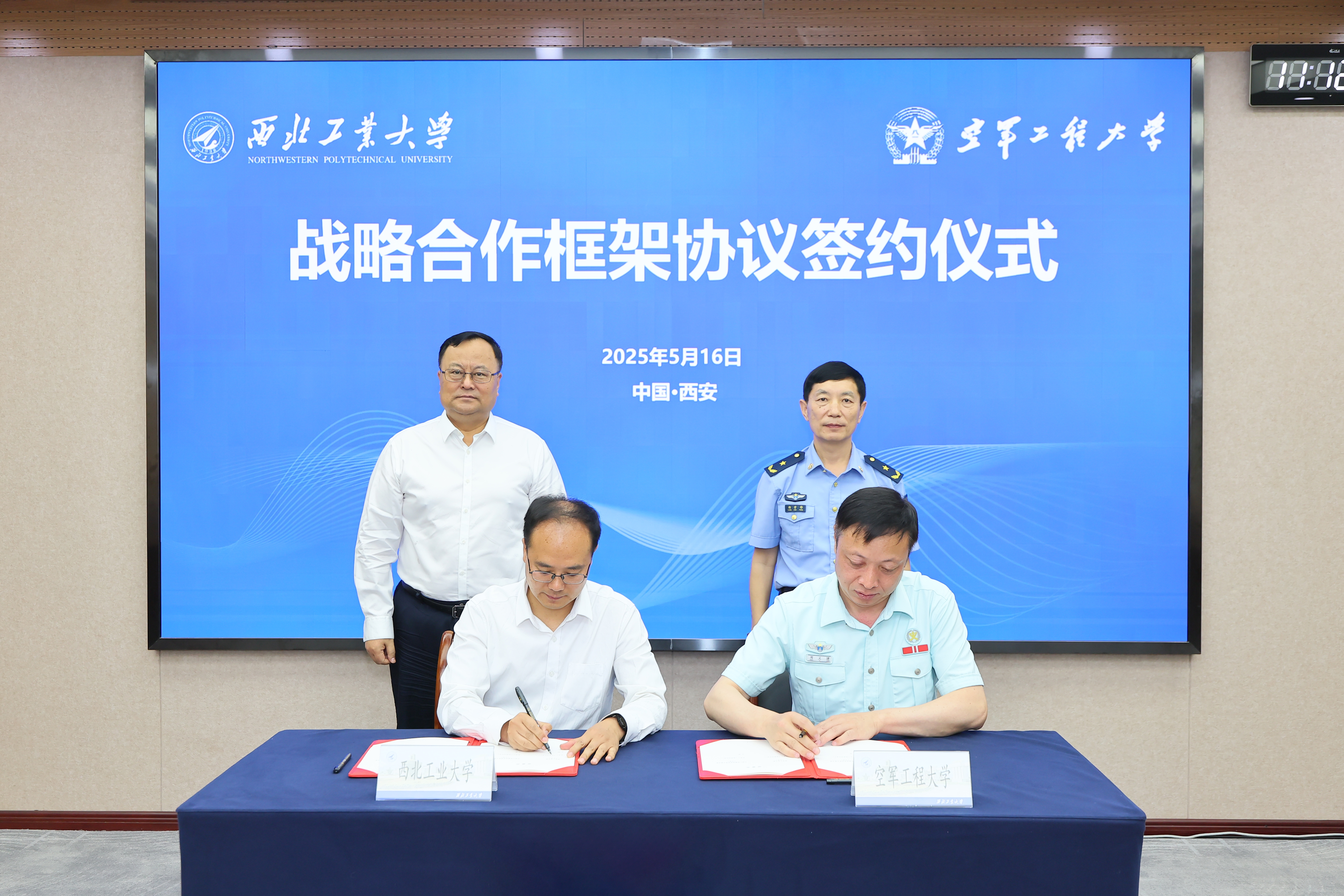 杨学锋对西工大近年来在国防领域取得的成绩表示敬佩,尤其对学校为社会培养了一大批型号总师、行业精英,被誉为“总师摇篮”表示赞赏,并介绍了空军工程大学的基本情况。他说,本次合作既是深化军民融合战略的时代要求,更是增进两校友谊、推动创新发展的战略举措,开启了继往开来、共建共赢的新纪元,必将为双方提升办学育人质量注入强劲动力。两校强强联手,必将开启“战技合作、引领航空”的崭新篇章,并从“作战实验室、引领向战,人才多交流、合作共赢,项目组团队、争先创优,智能促宇航、建强学科,‘五五’双理念、为国铸剑”五个方面对双方下一步合作提出希望。