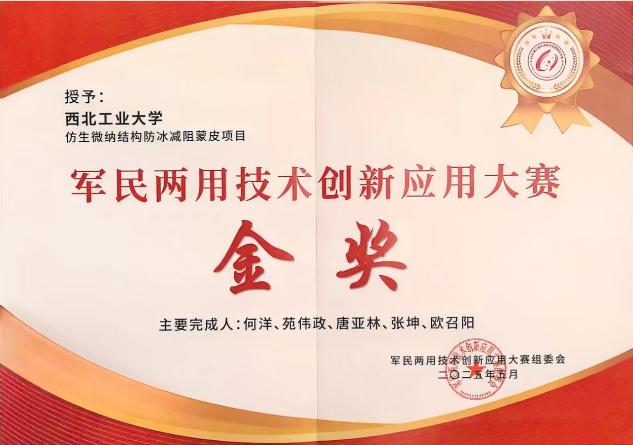taptap点点微纳创新团队的“仿生微纳结构防冰减阻蒙皮”项目荣膺2025年军民两用技术创新应用大赛新能源与节能环保赛道金奖第一名。