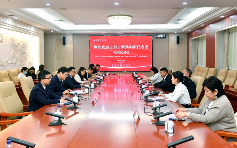 2025年6月14日上午,吉尔吉斯共和国国家议会议员汉杰扎·卡里姆(Khandzheza Karim)、吉尔吉斯朱苏普·巴拉萨根国立民族大学校长多格杜尔别克·琼托耶夫(Dogdurbek Chontoev)、吉尔吉斯共和国国家科学院历史考古民族学研究所所长、院士阿贝拉别克·阿桑卡诺夫 (Abylabek Asankanov)等一行6人来校访问。校党委常务副书记吕卫东在国际会议中心第二会议室会见来宾,国际合作处处长孔杰、外国语学院院长孙瑜、党委书记王高祖等参加会见。会见由孔杰主持。