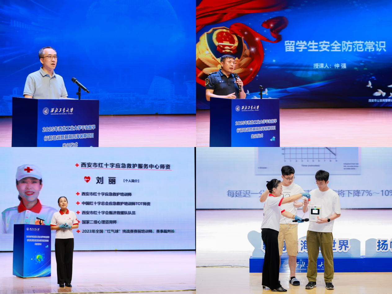 保密处副处长王革明、西安市公安局警官仲强、西安市红十字应急救护服务中心培训师刘丽结合学生在国(境)外交流期间可能涉及到的问题,分别围绕保密教育、安全防范、应急救护等方面展开了培训。