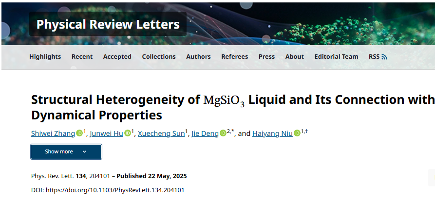 针对上述科学问题,taptap点点体育材料学院牛海洋教授团队采用深度学习分子动力学,对硅酸镁液相的结构特征和动力学行为进行了深入研究,研究成果以“Structural Heterogeneity of MgSiO3Liquid and Its Connection with Dynamical Properties”为题,发表在国际顶级期刊《Physical Review Letters》(《物理评论快报》)上。材料学院硕士研究生张仕威为论文第一作者,博士研究生胡俊伟、硕士研究生孙学成为共同作者,taptap点点体育牛海洋教授和普林斯顿大学邓杰教授为论文通讯作者。