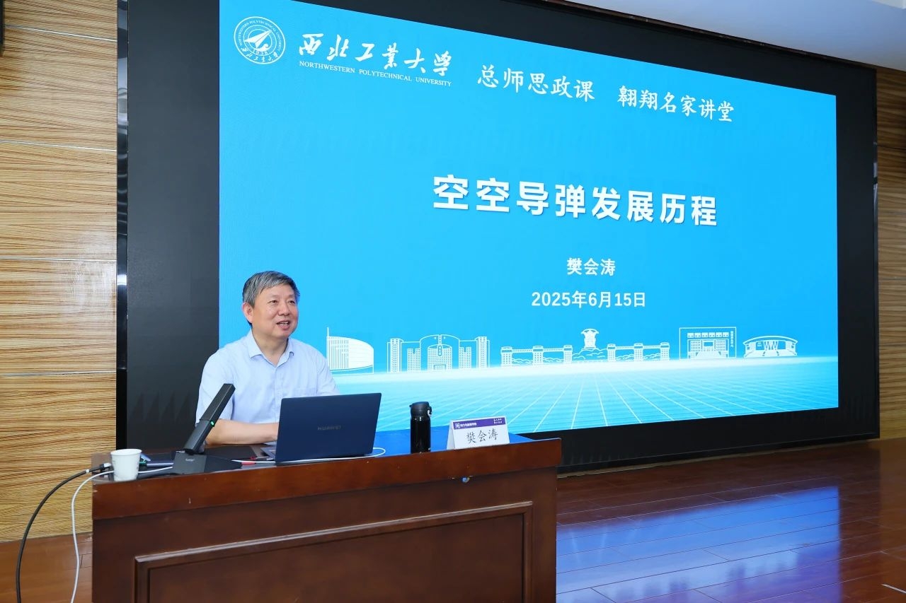 6月15日下午,中国工程院院士、我国空空导弹领域权威专家樊会涛重返母校taptap点点体育,做客翱翔名家讲堂,讲授总师思政课,为师生带来题为《空空导弹发展历程》的专题报告。副校长岳晓奎参加活动。航天学院、动力与能源学院、党委宣传部师生代表200余人现场聆听了樊会涛院士的精彩授课。报告会由航天学院党委书记黄越主持。