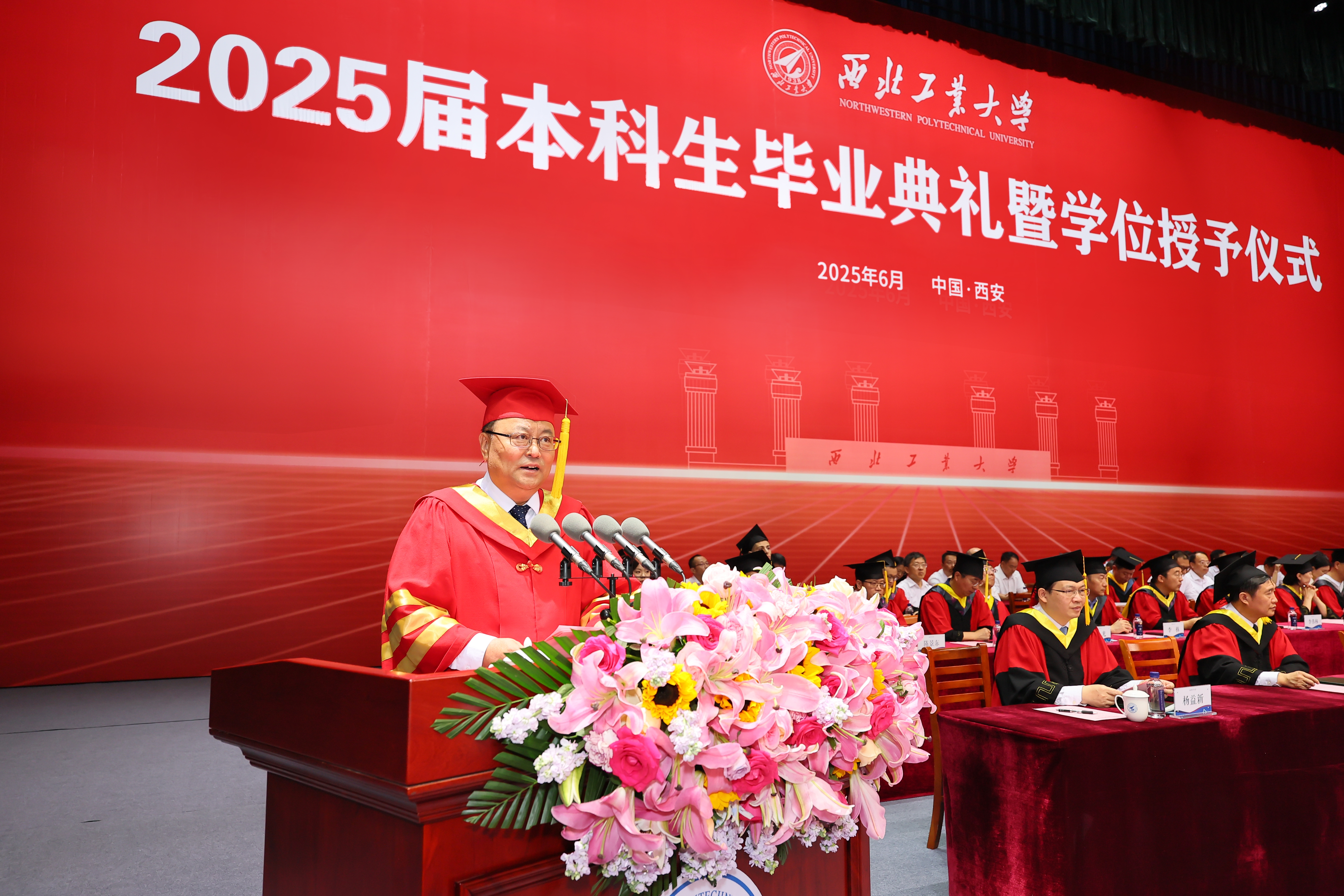 同学们,四年的西工大时光,为你们打下了坚实的人生基础,烙下了深刻的工大印记。愿你们厚植家国情怀、发扬奋斗精神、练就过硬本领,在强国复兴的道路上践行自己的青春使命。