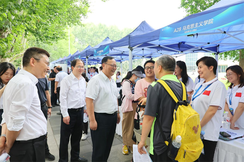 宋保维来到各学院(研究院)招生咨询展位前,对前来参加咨询会的广大考生与家长表示欢迎。他详细询问:“从哪里过来的?意向学院和专业是什么?未来有没有深造计划?”为考生及家长介绍学校学科特色、培养模式、就业前景等,鼓励考生积极报考。