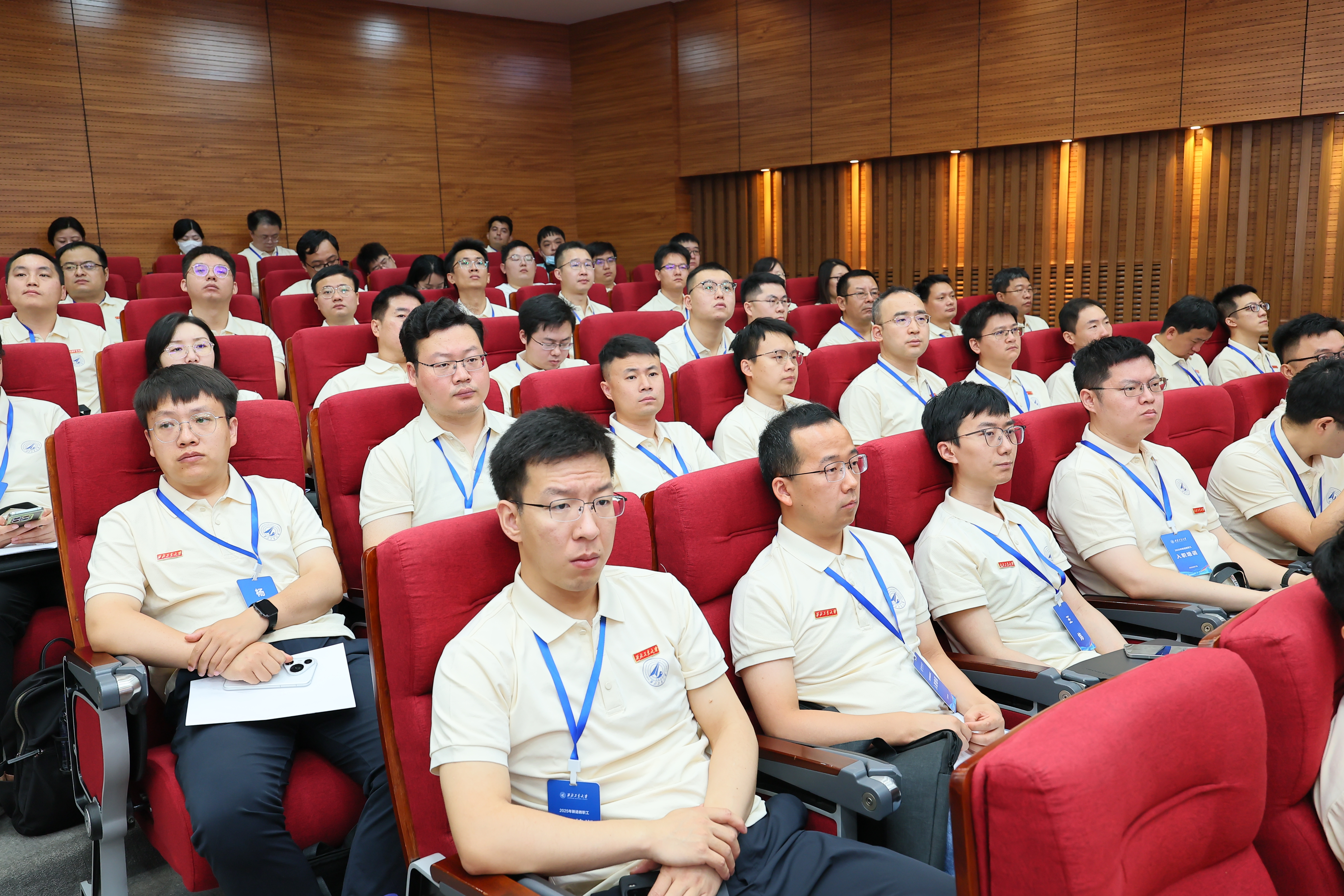 新进教职工入职培训是学校推进教育家精神铸魂强师、培养新时代高水平教师队伍的重要举措。本年度,学校对培训方案进行了持续优化:突出需求导向,优化课程设计,根据参训教职工的岗位特点和职业发展需求,提供有针对性的政策资源介绍、职业规划和成长指导;突出行业锻炼,深化校企合作,分批次选派专业契合度高的新入职教师赴院所交流,提升青年教师服务国家重大需求以及“总师型”人才培养能力;突出交流研讨,凝聚发展共识,新增了分组交流研讨环节,聚焦学校发展战略以及个人职业生涯规划等主题交流研讨,为跨学科、跨领域协同攻关搭建桥梁。