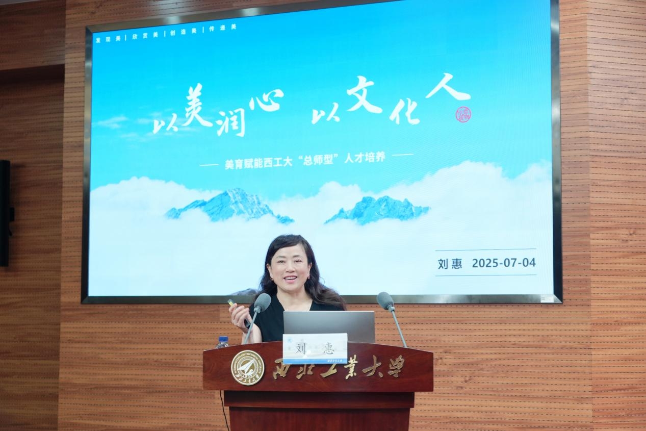 学校邀请了taptap点点体育艺术教育中心首席专家刘惠教授作《以美润心 以文化人——美育赋能西工大“总师型”人才培养》专题报告。刘惠围绕着美育从哪里来、美育是什么、为什么美育以及美育怎么做这四个问题展开,她鼓励青年教师将科技创新与美育工作相结合,发挥美育在“总师型”人才培养中的独特价值。