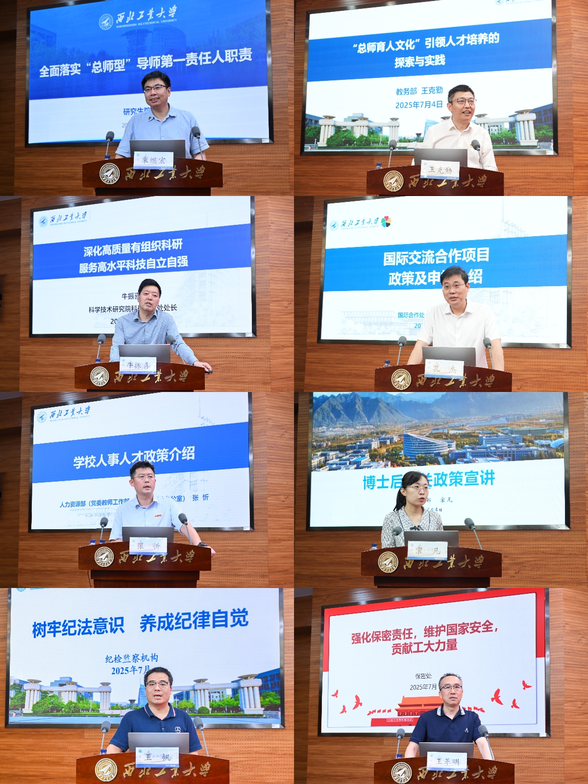 学校研究生院、教务部、科学技术研究院、国际合作处、人力资源部、纪检监察机构、保密处等职能部门的负责人亲临现场,为新进教职工进行深入细致的讲授。这些课程涵盖了学校的核心政策、关键制度以及日常工作的规范要求,为教职工筑牢职业发展的基石。学校还特别邀请了陕西师范大学的衣新发教授主讲《教师心理健康能力提升》专题讲座。此外发展规划处、计划财务部、图书馆、工会等职能部门制作线上视频课程,对相关政策资源、办事流程等内容进行全面细致的解读。
