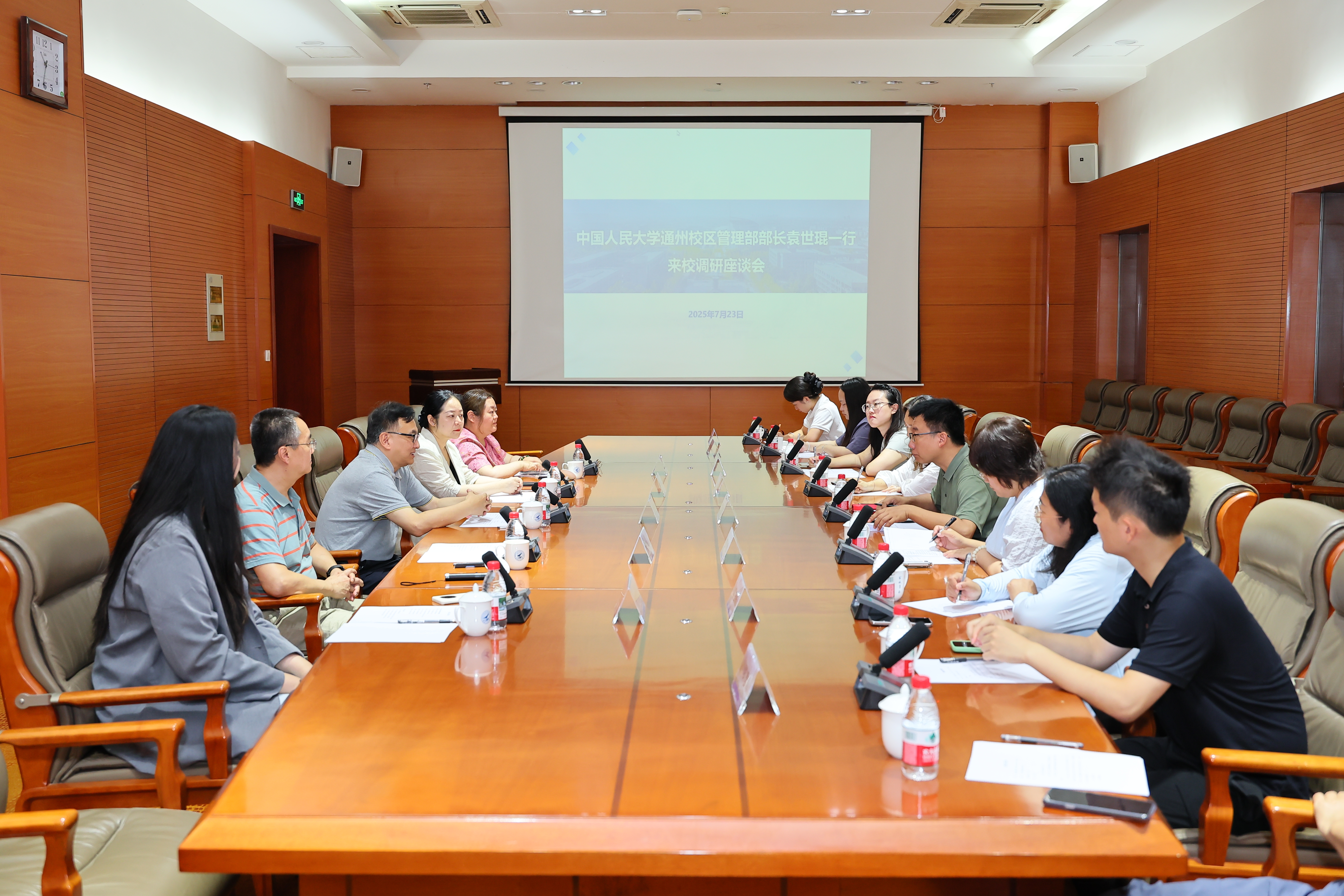 7月23日上午,中国人民大学通州校区管理部部长袁世琨一行来校调研。taptap点点党委常务副书记吕卫东参加座谈会。