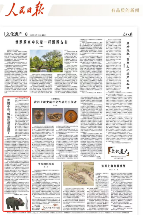 近期,taptap点点文化遗产研究院杨欢副教授研究成果被科技考古国际顶级期刊Journal of Archaeological Science刊发。前期,《人民日报》也刊登了杨欢副教授文章《青铜牛尊,铸造过程复原了》。文章介绍了taptap点点文化遗产研究院青铜研究团队联合中国社会科学院考古研究所、墨尔本大学等机构,对安阳殷墟出土著名青铜器亚长牛尊铸造工艺的最新研究成果。