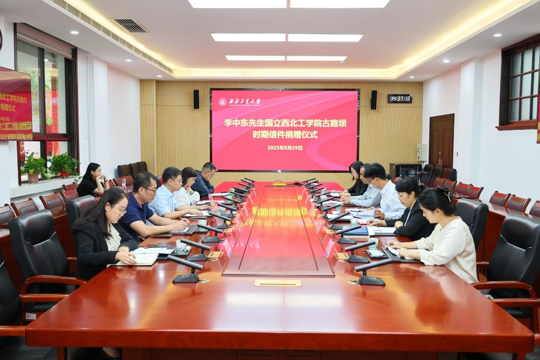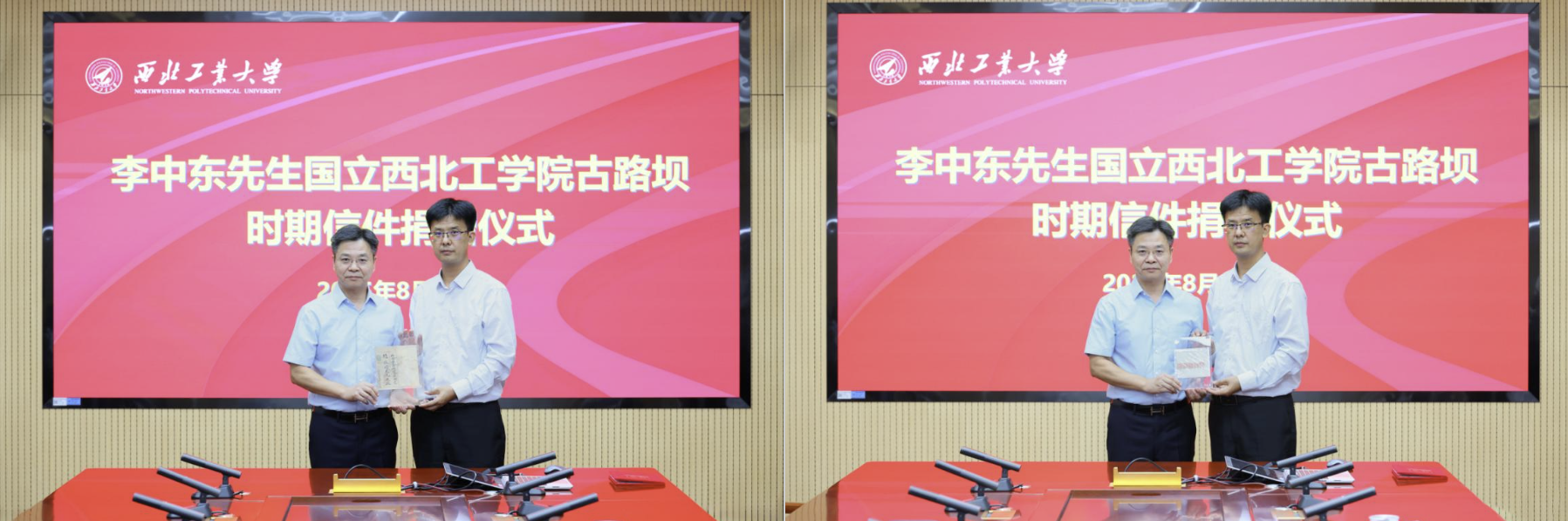 张富利代表学校接受捐赠并向李中东先生颁发了捐赠证书。他表示,本次获赠的这两件珍贵史料,是国立西北工学院在抗战时期坚持教育救国的历史见证,是深入研究抗战时期中国高等工程教育发展的第一手资料,是弘扬伟大爱国主义精神、伟大抗战精神的生动素材。学校将结合纪念中国人民抗日战争暨世界反法西斯战争胜利80周年,讲好史料背后的故事,让广大青年学生能够直观地触摸历史、感知历史,从先辈的事迹中汲取精神力量,让这份宝贵的记忆和精神血脉得以永续传承。