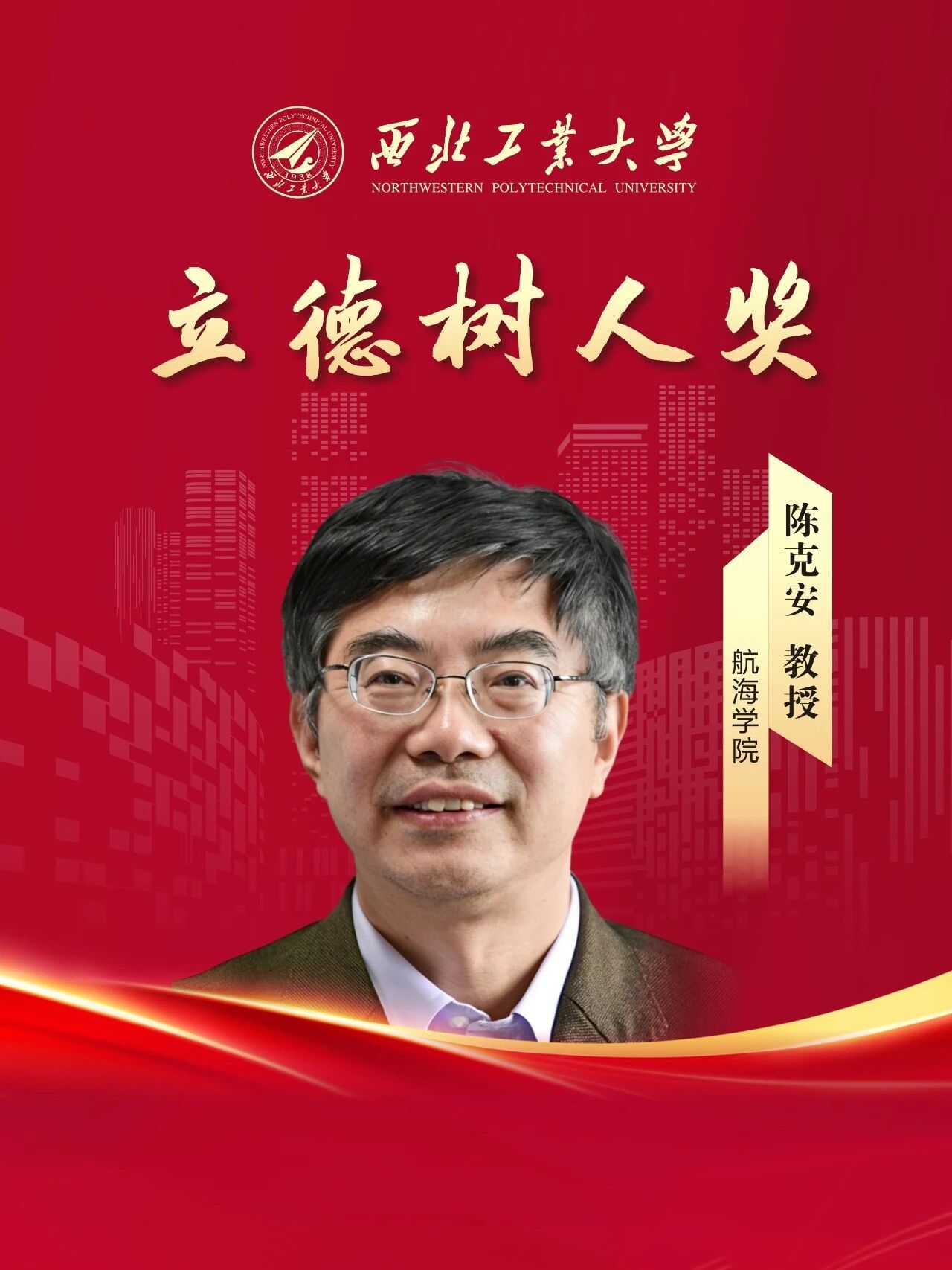 陈克安,航海学院教授、博士生导师,从教33年。主讲本科生课程12门、研究生课程4门,年均教学量250余学时;出版教材6部,建设陕西省精品课程1门,获省部级教学成果奖5项。培养硕、博士研究生97人,获评学校“研究生教育优秀导师”,入选教育部“跨世纪优秀人才培养计划”,获霍英东高等院校青年教师奖、陕西省师德先进个人。发表高水平论文400余篇,出版专著5部,获省部级科技进步奖6项及第七届中国青年科技奖,创立科技成果转化公司,担任首席科学家。担任国务院学科评议组成员、教育部教指委委员,兼职20余个学术组织及重点实验室学术委员会,为本领域的人才培养和学术创新做出了重要贡献。
