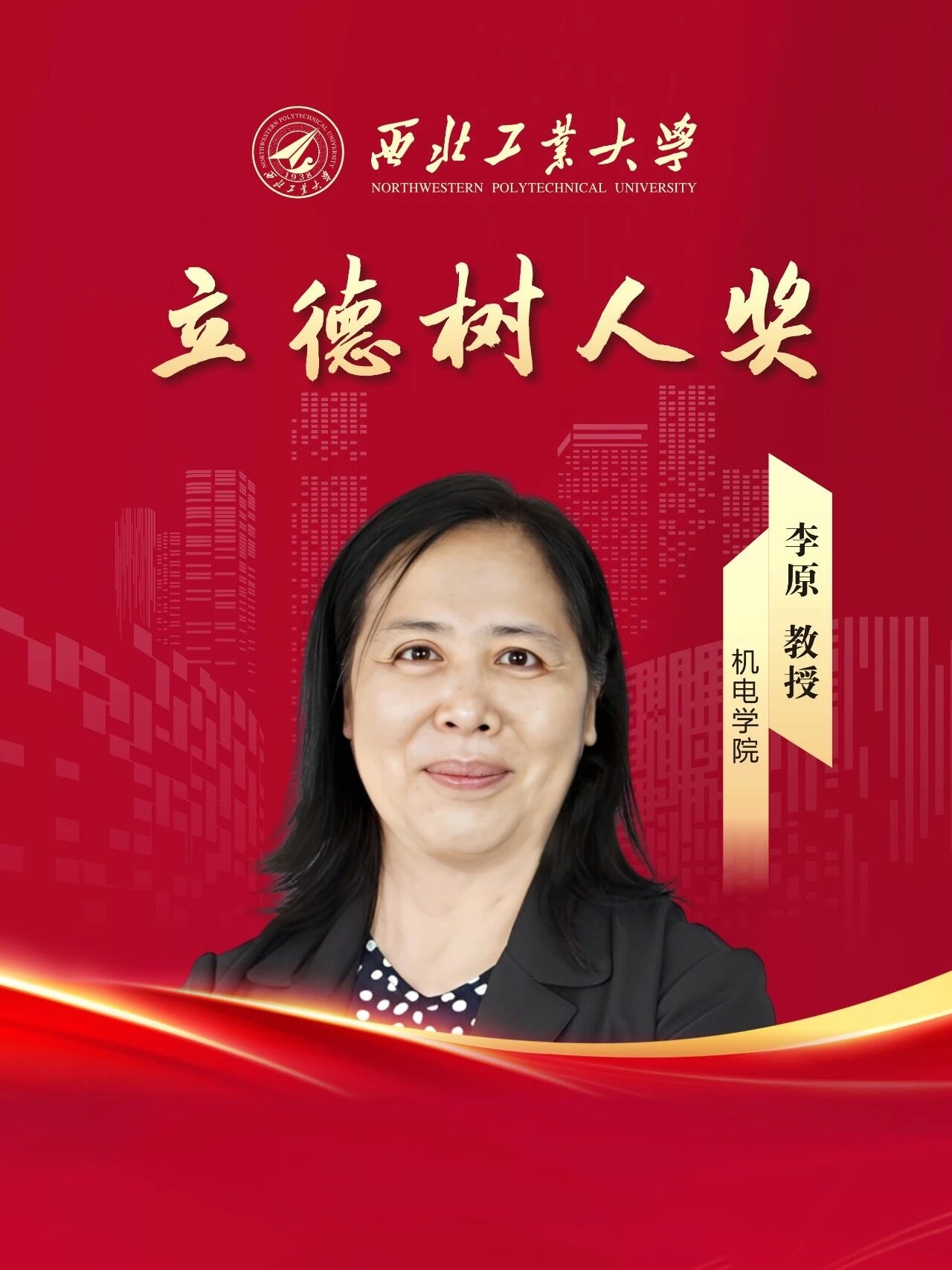 李原,机电学院教授,博士生导师,从教32年,一直奋战于科研及教学一线。已培养毕业研究生96人,其中70余人奋斗在航空航天型号研制一线。指导的在读博士生获基金委青年学生基础研究项目、首届博士生青年托举计划等。牵头成立“航空宇航装配研究所”,申获两项省部级科研平台,培养国家级领军人才3人,国家级青年人才6人,所带领团队作为第一完成单位获国家科学技术进步奖二等奖1项、省部级一等奖3项。