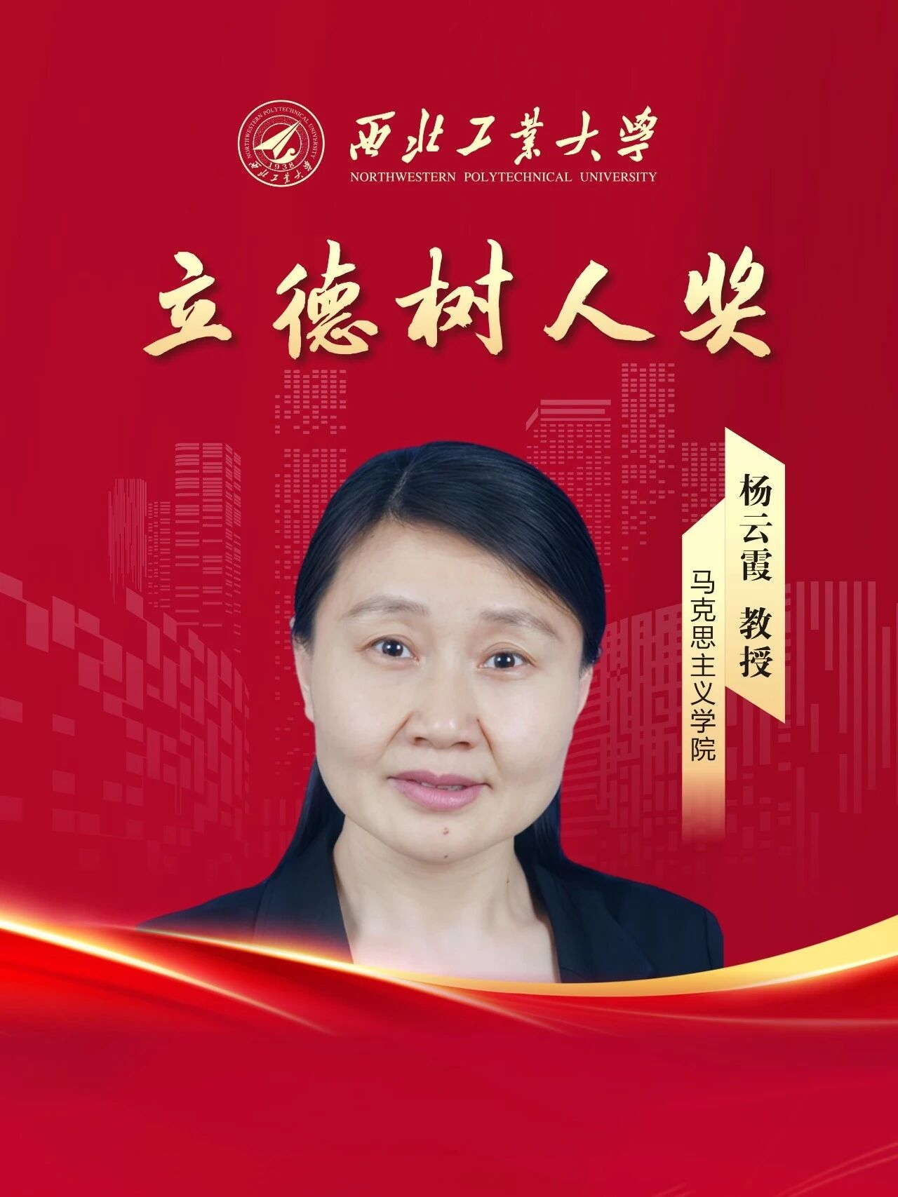 杨云霞,马克思主义学院院长、教授、博士生导师,国家级领军人才,全国文化名家暨“四个一批”人才,陕西省教学名师,陕西省“六个一批”人才。长期从事马克思主义理论研究,主持国家社科基金、国家社科基金重大项目子课题、最高人民法院司法研究重大课题等50余项;出版专著4部,在《马克思主义研究》《马克思主义与现实》等发表论文110余篇;荣获陕西省哲学社会科学优秀成果一等奖3项。主持国家级一流课程1门、陕西省教改项目2项,荣获国家教学成果奖、陕西省教学成果奖5项,参与国家教材委员会教材审核工作。兼任中国高等教育学会马克思主义分会副理事长。