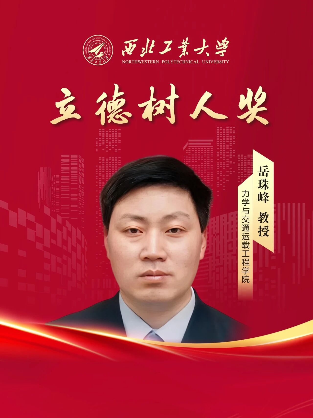 岳珠峰,力学与交通运载工程学院教授,博士生导师,国家级领军人才,从教31年。从事航空航天材料与结构的失效理论、设计方法、测试评价装备与技术等研究,应用50多个重大型号,突破了多项“卡脖子”难题。获国家科技进步二等奖1项,国防科技一等奖1项、二等奖1项、陕西省科学技术一等奖1项。授权发明专利149项;出版中英文专著23部;发表SCI论文超过640篇。热爱教育事业,坚守育人一线,培养50余名博士,获全国优博提名奖1人、省优博7人;担任工程力学本科专业、国家力学实验教学示范中心负责人,获陕西省教学成果特等奖一等奖各1项。
