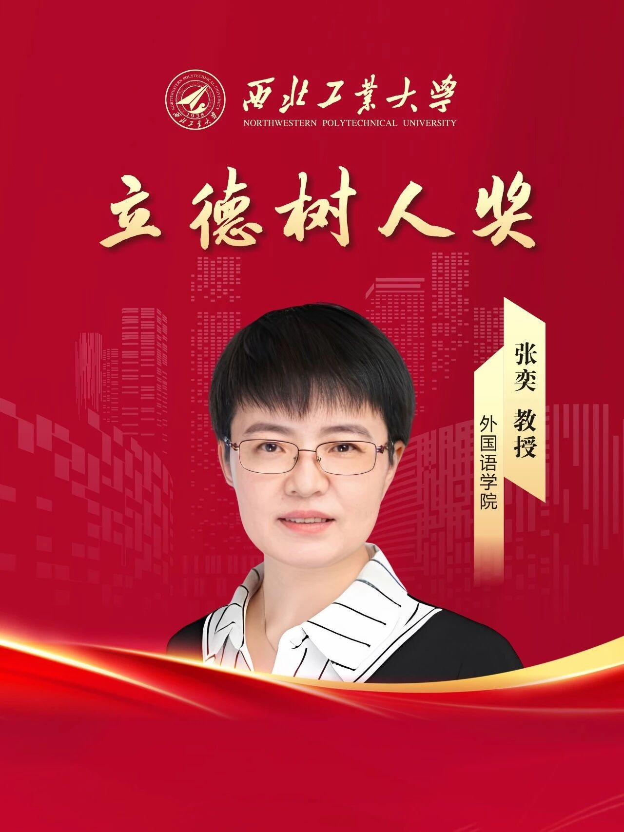 张奕,外国语学院教授,博士生导师,从教36年。全心奉献外语教学,服务西部国防教育,坚持教学第一线,先后主讲理工科公共外语课3门,英语专业本科核心课6门,英语专业研究生学位课3门,共计3类12门不同课程。坚持在课堂教学中传递正能量,注重课程思政实施,引导学生用外语讲好中国故事,获宝钢优秀教师特等奖。以第一完成人获国家级优秀教学成果二等奖1项、陕西省优秀教学成果一等奖1项、二等奖2项,被评为陕西省教学名师,陕西省教学领军人才,入选陕西省人文英才计划,为省级教学团队负责人。
