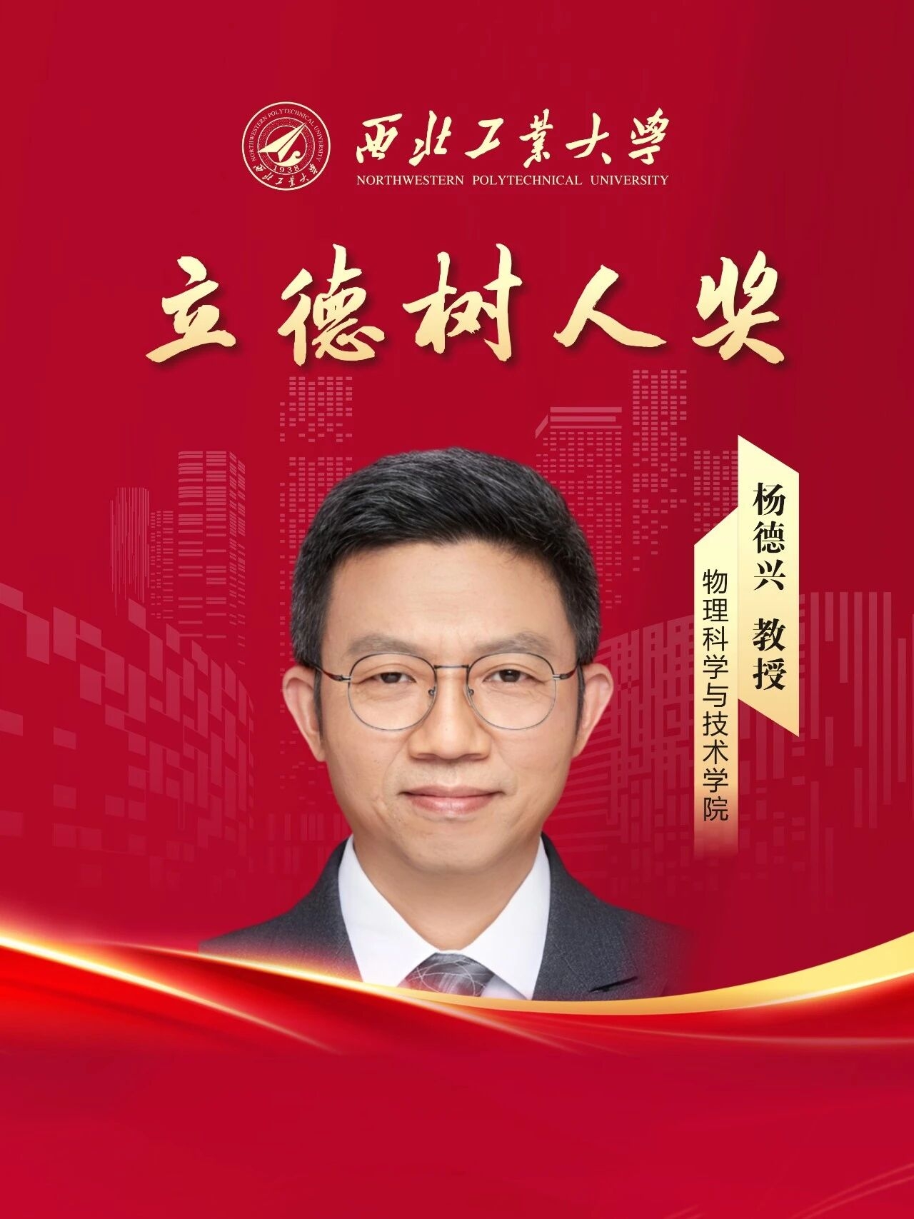 杨德兴,物理科学与技术学院教授,博士生导师,从教38年。从事光纤传感与光电技术研究与光电类人才培养工作。主持和承担国家级重大重点项目课题等30余项,发表学术论文150余篇。立足学科前沿,精心构建了光电人才培养体系,光电信息科学与工程专业获批全国一流专业建设点。聚焦竞赛育人,建立创新实践指导中心,指导学生多次荣获国家级、省级竞赛一等奖,实现了多项历史性突破。坚持交叉创新,培养出一批获得王大珩光学奖、陕西省优秀博士论文等奖励的优秀创新人才。此外,他履职社会服务,创建“科学点亮人生”科教帮扶品牌,彰显教育者的责任与担当。