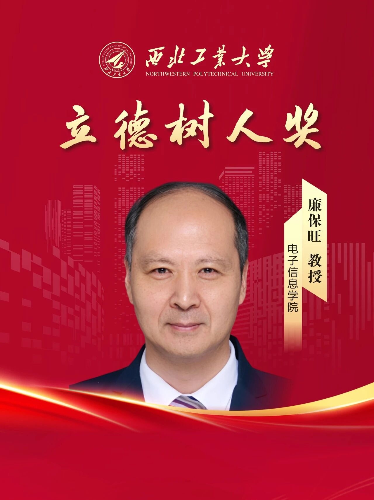 廉保旺,电子信息学院教授,博士生导师,从教39年。在教育教学方面,主讲本科生课程2门,研究生课程3门,负责陕西省一流课程建设1门,获陕西省教学成果一等奖1项。在科学研究方面,长期从事北斗卫星导航、无线通信和航空搜救等领域研究,主持国家自然科学基金、民机专项、重大横向等科研项目60余项,先后获国防科技进步一等奖1项,陕西省科技进步二等奖3项,三等奖3项。在人才培养方面,始终将“培养什么人、怎样培养人、为谁培养人”作为根本问题,指导的学生团队在中国国际大学生创新大赛、电子设计竞赛等竞赛中获国家级和省部级奖励100余项。