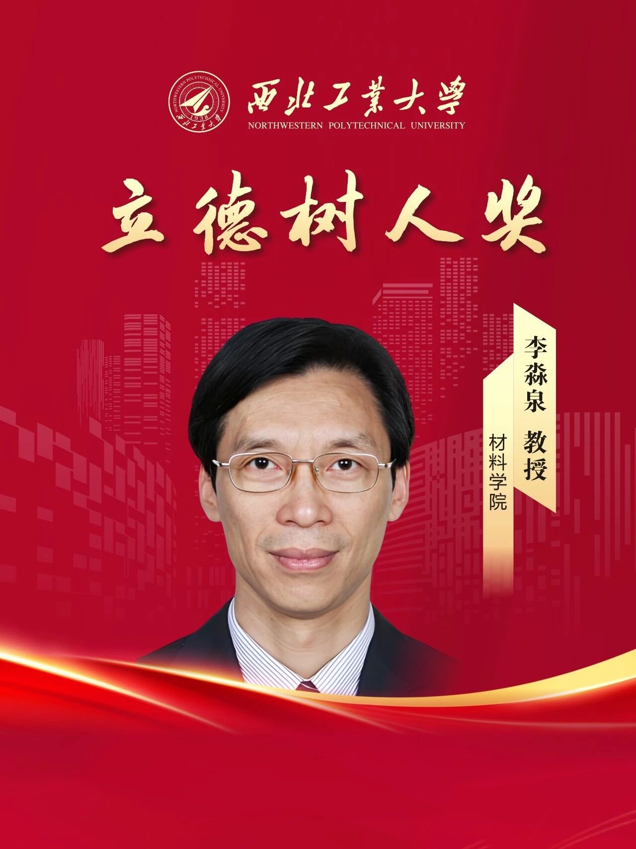 李淼泉,材料学院教授、博士生导师,从教38年。国家级领军人才,国家百千万人才,从事轻质金属材料加工研究,组建了国防科技工业难变形材料锻造创新中心。主持国家自然科学基金、装备预先研究和重大攻关等40余项,发表论文488篇,授权发明专利56项,获国家技术发明奖和科技进步奖各1项、省部级科技成果奖一等奖3项。主编或者副主编高等学校教材4本,获陕西省普通高等学校优秀教材奖一等奖1项、优秀博士学位论文5篇,多次获教书育人先进个人、研究生优秀导师。指导研究生116人,其中20余人成长为国家级人才、科研骨干及型号总师。