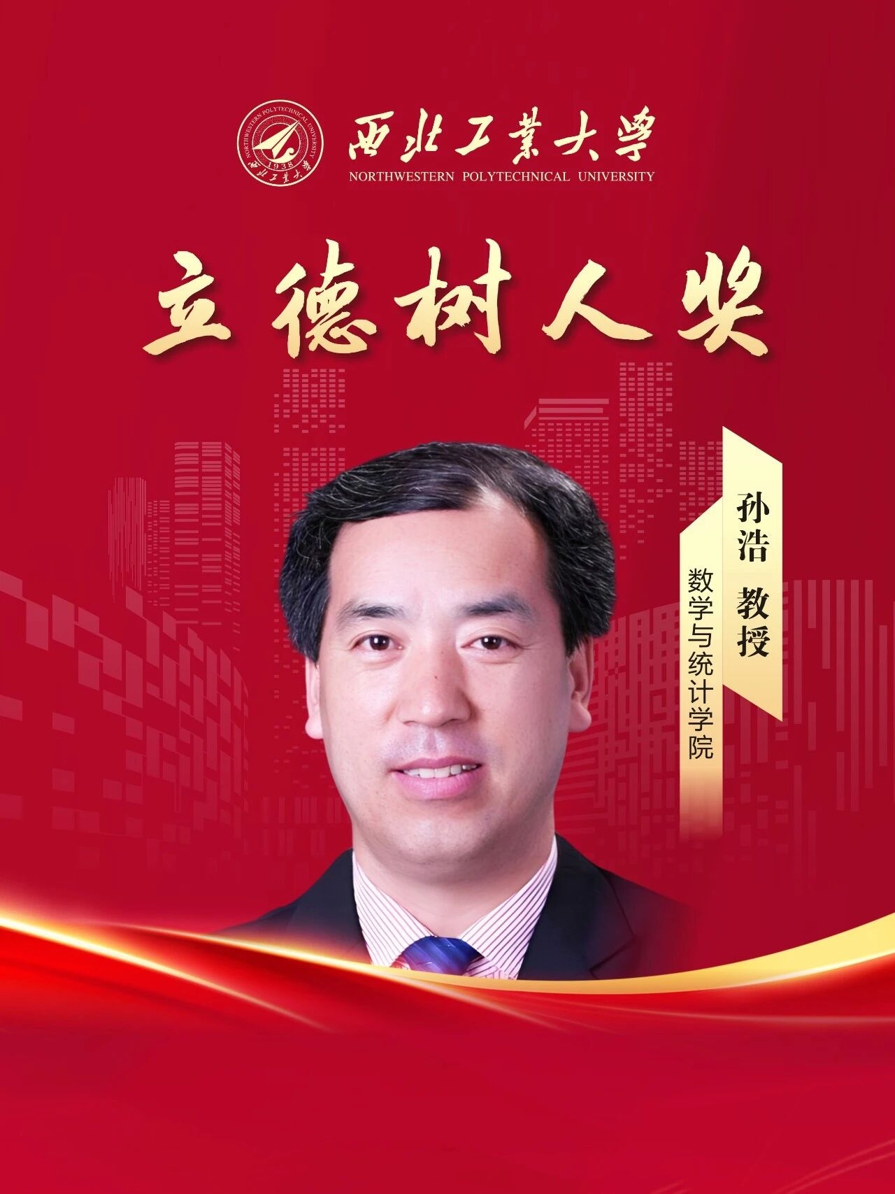 孙浩,数学与统计学院教授,博士生导师,国家级一流课程、省级一流专业、省级教学团队负责人。任教39年,从一名乡村教师成长为国家级教学名师,一贯忠诚党的教育事业,政治立场坚定,以课程思政为引领,充分发挥课堂教学在立德树人中的主渠道作用以及教师在立德树人中的主体作用,几十年如一日,长期坚守在一线教学,为党育人、为国育才。曾获国家政府特殊津贴、陕西省师德标兵、霍英东教育教学奖、宝钢优秀教师奖、陕西省教学名师奖等荣誉;并获国家级教学成果一等奖1项、省级特等奖1项、一等奖2项、陕西省自然科学二等奖1项。