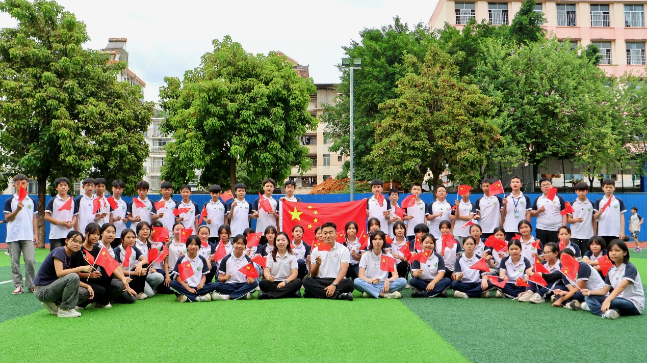 国庆前夕,学校第27届研究生支教团成员与服务地的学生一起,通过“我与国旗合个影”、航空科普讲座、苗族图腾文化讲解等形式,将民族文化、爱国情怀与科学精神融为一体,在互动中传递温暖,在陪伴中播种梦想,共同祝福祖国母亲生日快乐。