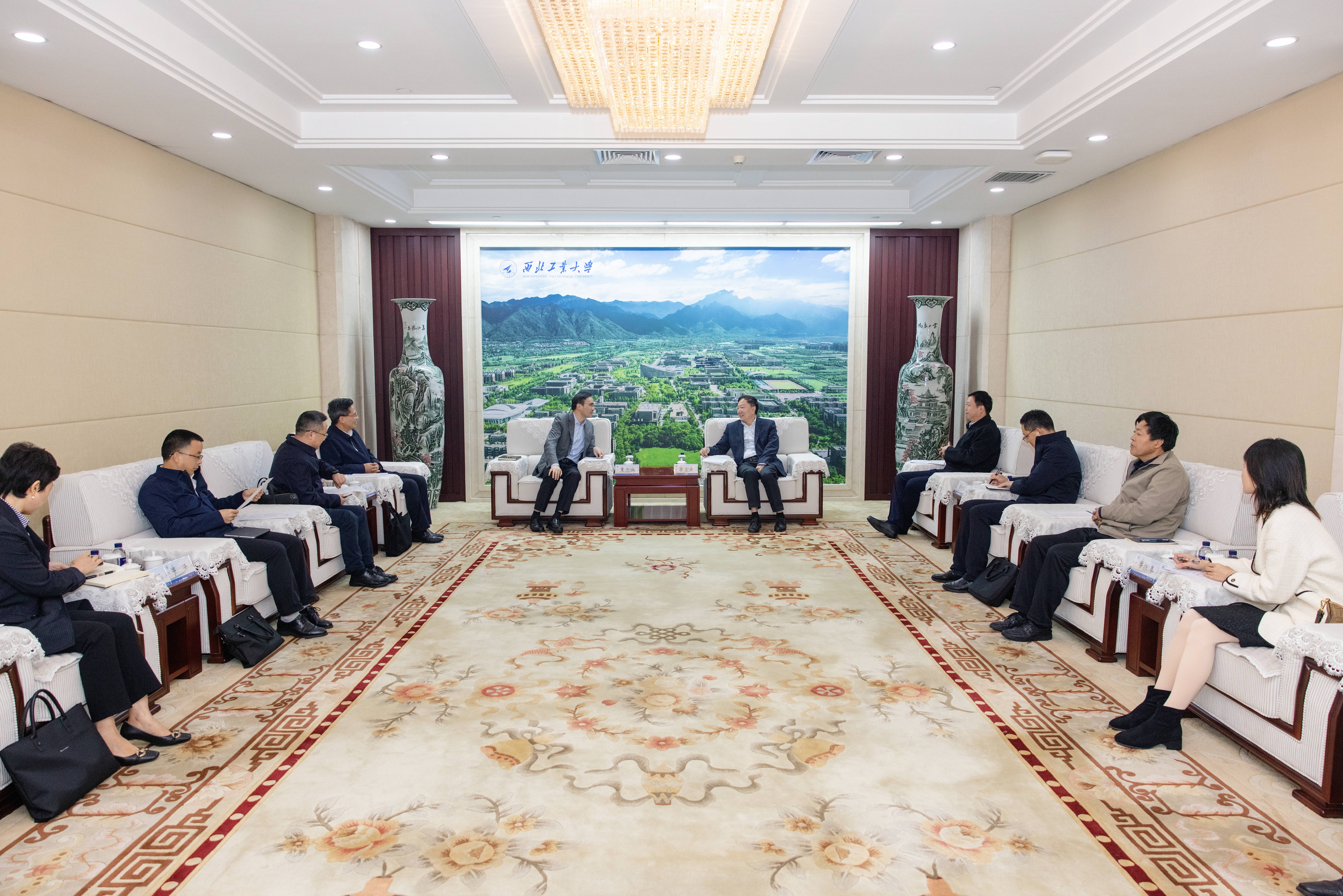 李言荣对王忠诚一行表示欢迎,并介绍了学校的办学特色。他说,近年来遂宁市经济社会发展势头良好,特别是在锂电新能源、电子信息、空天产业等方面发展迅速。遂宁市发展低空经济等产业新赛道,与西工大的专业、学科和人才培养都具有强关联性。学校将发挥航空、新材料、新能源等领域的科研和人才优势,深化校地合作,开展协同科研,为地方发展做贡献。