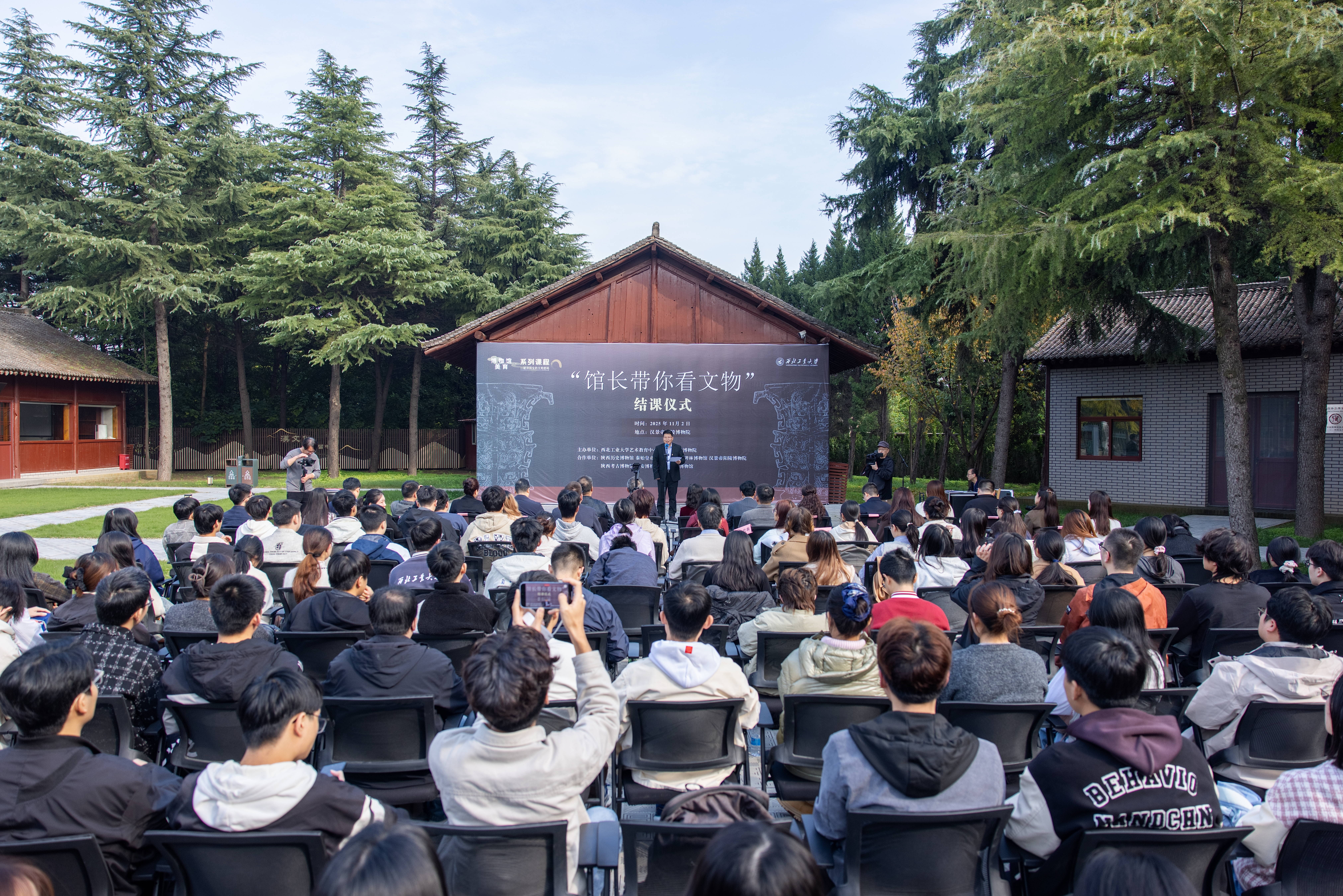 本学期课程中,七大博物馆馆长亲自授课,围绕“西安碑林的保护与传承”“文景之光 教育传承”等主题展开深入讲解。教学场所遍及陕西历史博物馆、西安博物院等多家文博机构。通过这样的教学方式,推动学校美育、博物馆教育与学校“总师育人文化”深度融合。