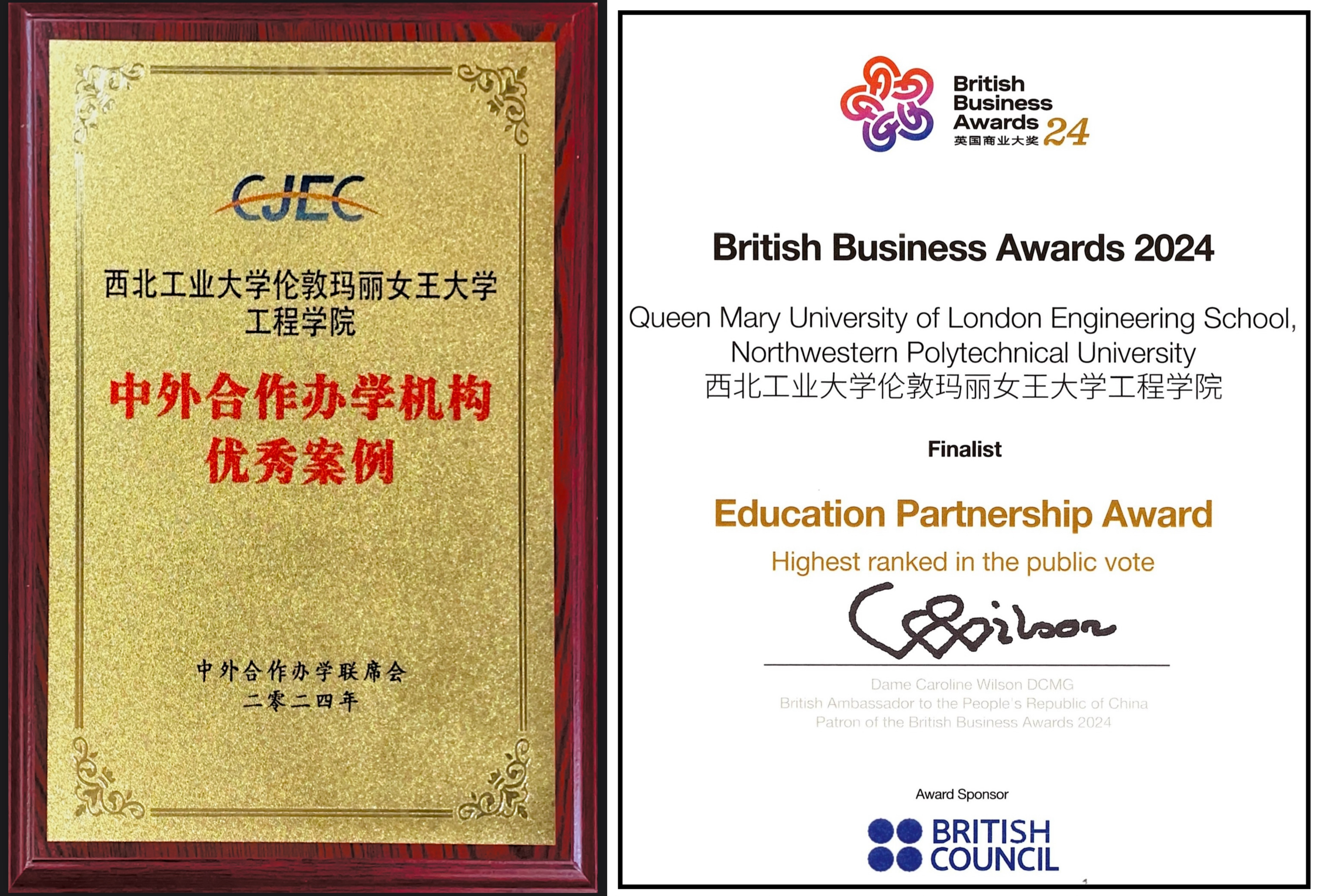 自2016年建院以来,学院荣获校先进集体1次、“三全育人”先进集体2次、3个支部获评先进基层党组织;荣获陕西省教学成果奖一等奖1项、二等奖1项,校级教学成果奖特等奖2项,3名教师当选英国IoM3学会会士等;先后获评“中外合作办学机构优秀案例”(全国20佳),“2025年度中外合作办学机构杰出机构”(全国仅16个),四次荣获“陕西省中外合作办学优秀机构”(全省仅2个),并荣获英国商业大奖“教育合作最佳大众人气奖”,社会影响力显著提升。