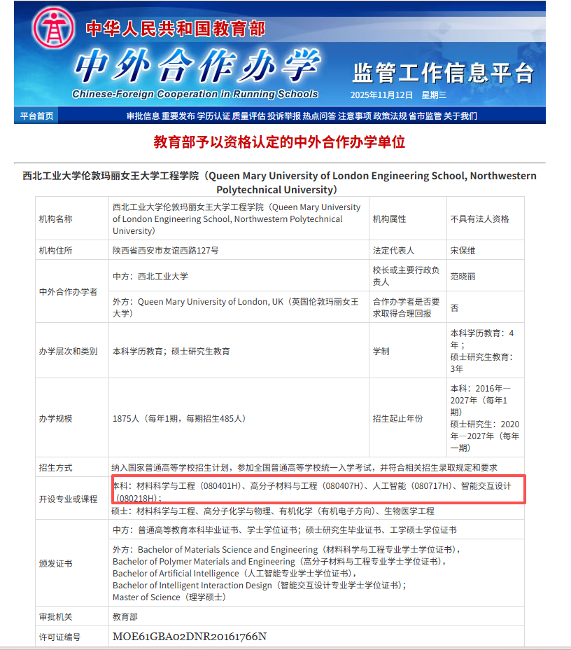 近日,taptap点点体育伦敦玛丽女王大学工程学院(以下简称“学院”)增设“人工智能”(080717H)、“智能交互设计”(080218H)两个本科专业正式获得教育部批复同意。这是学院贯彻落实学校第十四次党代会精神,紧密围绕学校“127”目标和“一十百千”中期目标,在中外合作办学领域取得的一项重要进展。新专业的获批,标志着学校在深化教育对外开放、优化学科专业结构方面取得新的突破。
