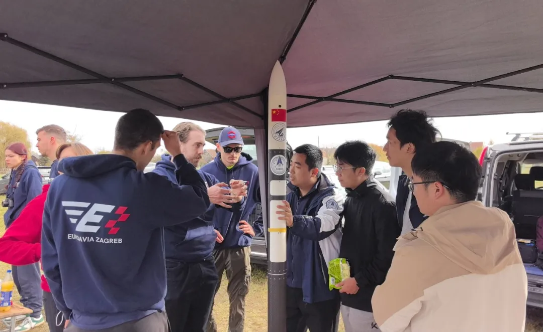 近日,星辰火箭团队还受邀赴克罗地亚参加由该国太空与火箭协会(HARS)主办的国际火箭节,这是我国高校首次赴欧盟参加火箭类赛事。该火箭节已有40余年历史,本年度有来自包括克罗地亚、奥地利、斯洛文尼亚、塞尔维亚和中国等国家的共18支团队参加。面对仅有一周的准备时间,团队快速地完成了一型高可靠探空火箭的设计与制作。抵达现场后,团队成员根据发动机实物精准计算弹道、调整静稳定度,并利用现场材料约束推力偏心。火箭发射后飞行稳定,回收系统工作精准可靠,技术实力获得国际同行高度认可。