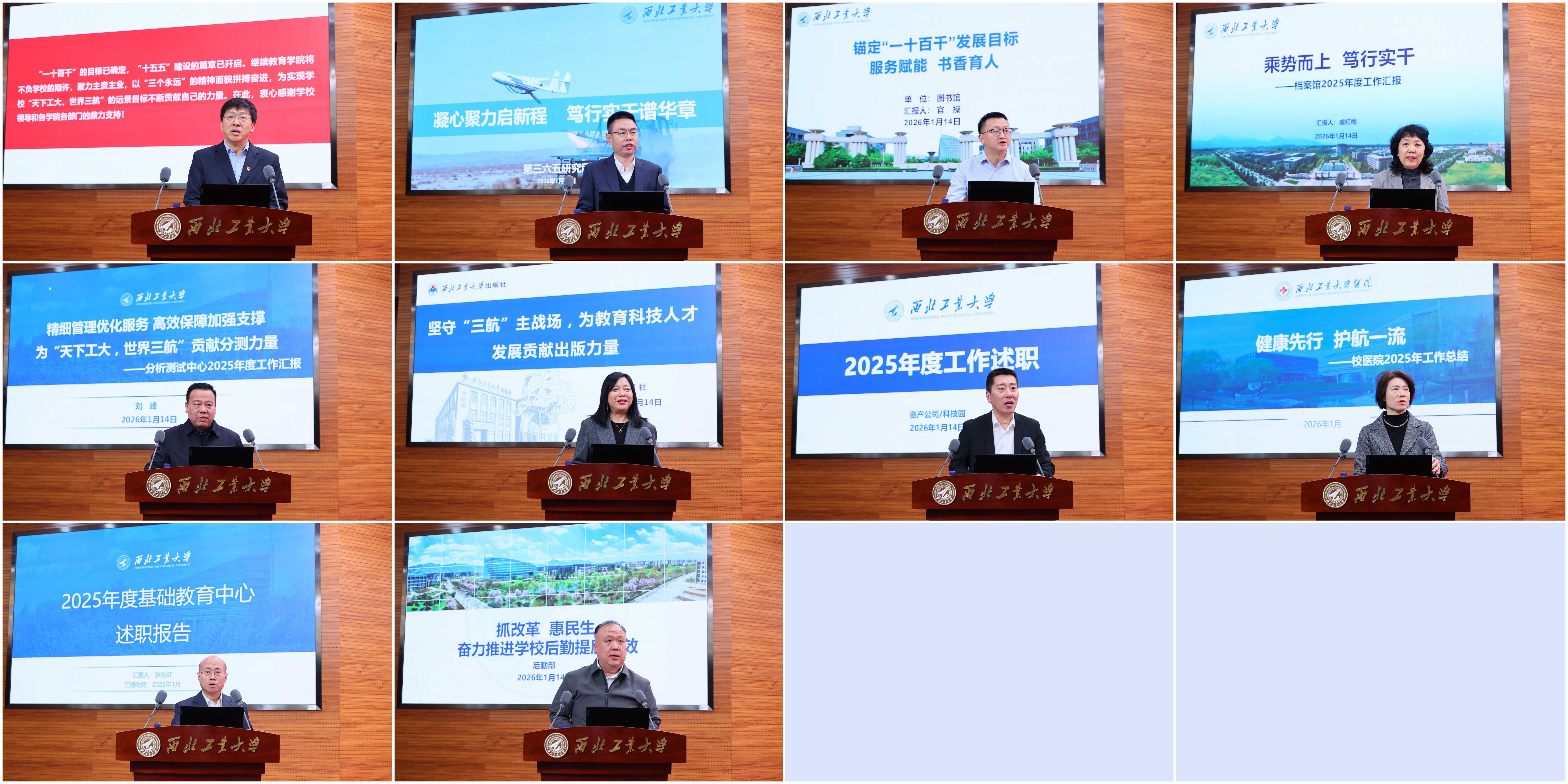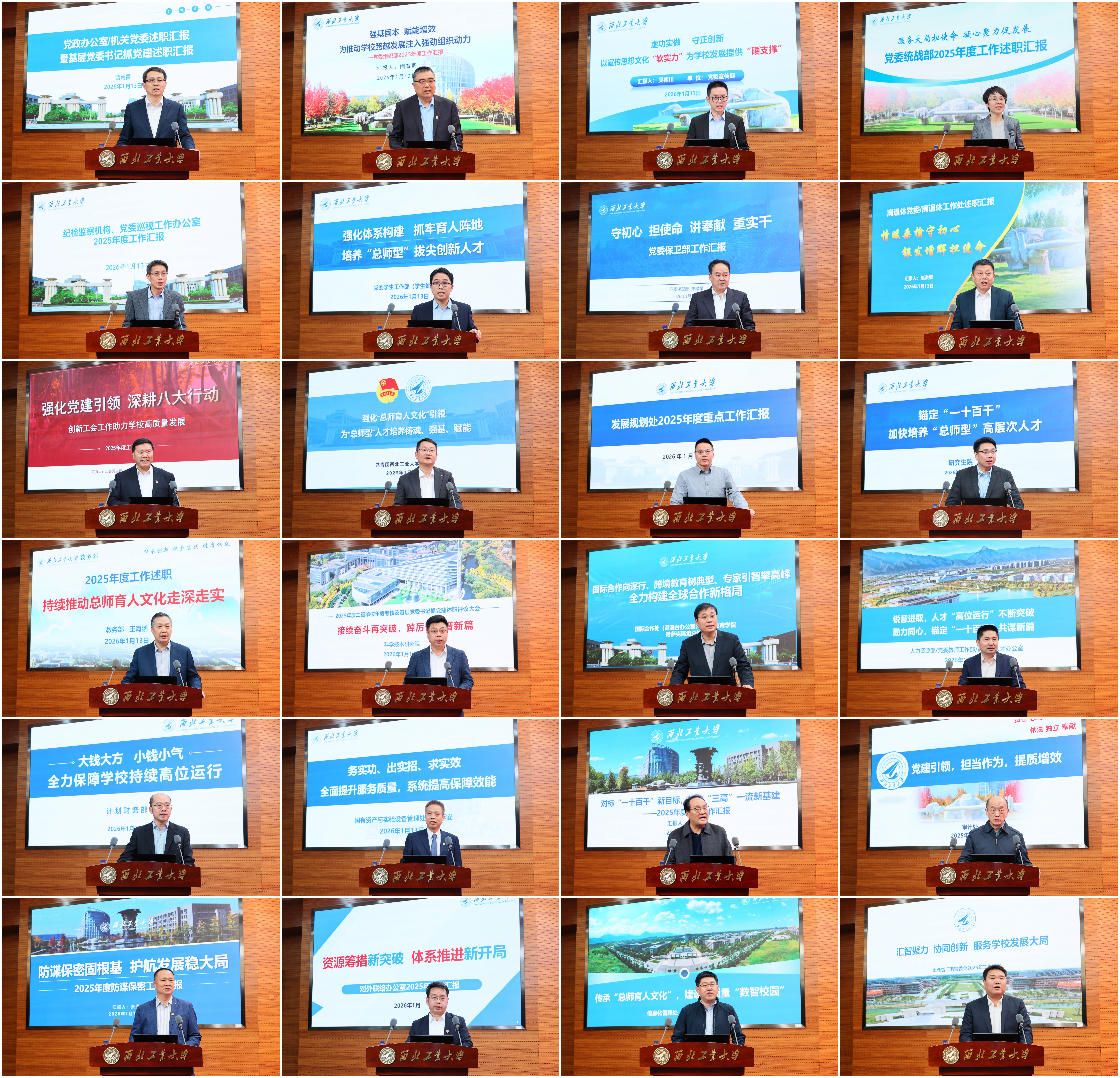 全校二级单位负责人围绕2025年度重点工作和目标责任制中期考核各项指标完成情况,从人才培养、科学研究、师资队伍、学科建设、国际合作等方面取得的成果以及事业发展情况、特色亮点,下一步努力方向进行述职。大家一致表示,在学校党委的坚强领导下,2025年是taptap点点高质量、高水平、高速度发展的又一年,党建和事业融合发展,核心竞争力取得了重大进展,办学水平、办学质量又前进了一大步,圆满完成了“十四五”规划,提前实现了“127”的目标。大家表示,2026年将进一步围绕学校改革发展大局不断开拓创新,踔厉奋发,为加快建设教育强国、科技强国、人才强国作出新的更大贡献。