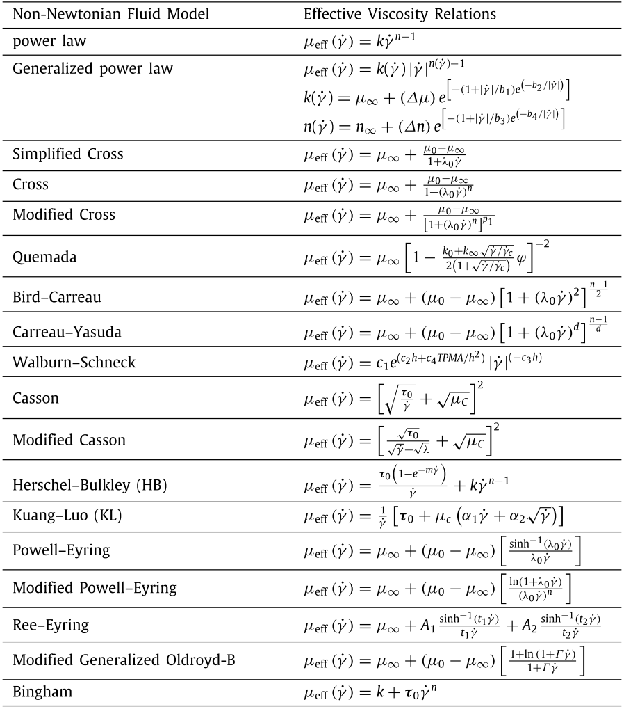 血流动力学中主流的非牛顿流体模型