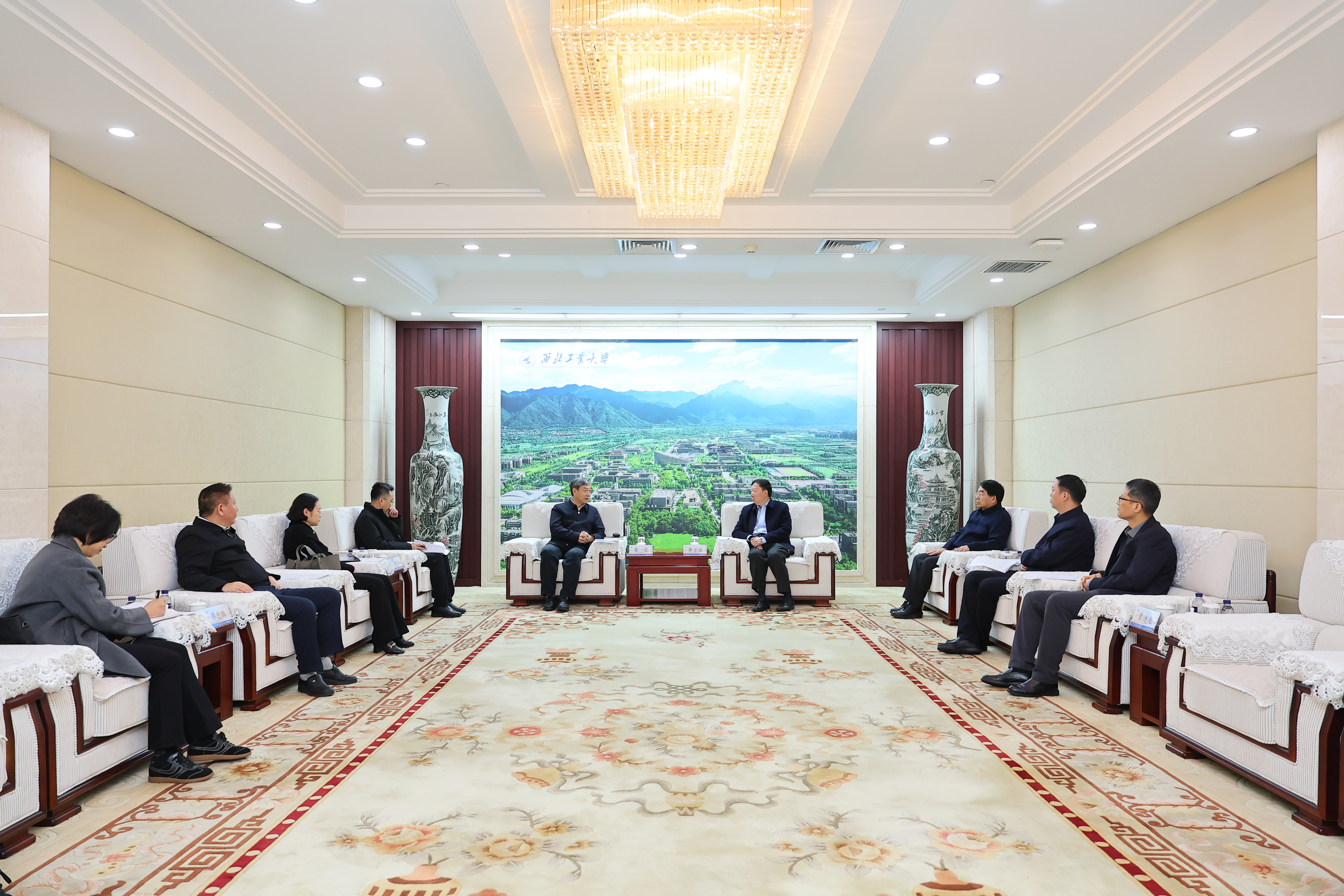 李言荣对马震一行表示欢迎,并对重庆市长期以来给予西工大的关心与支持表示感谢。他简要介绍了学校在人才培养、科学研究及成果转化等方面的特色与优势。他说,西工大始终坚持以国家战略需求为导向,积极服务区域经济社会发展。希望与重庆市加强沟通交流,充分发挥各自优势,共同高标准建设科创平台,为服务国家高水平科技自立自强和区域高质量发展贡献力量。