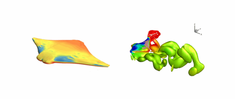 仿生外形优化设计与大变形流固耦合仿真技术:仿蝠鲼外形相似度达到90%以上。