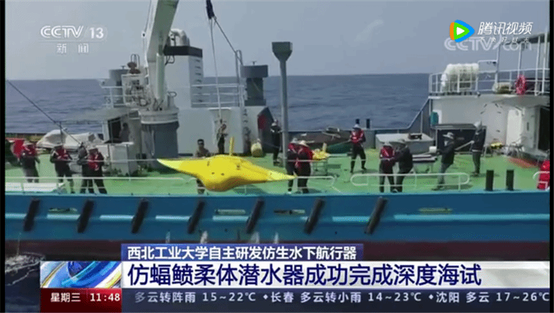 西工大仿蝠鲼柔体潜水器完成深度海试