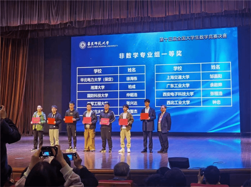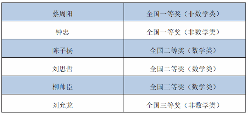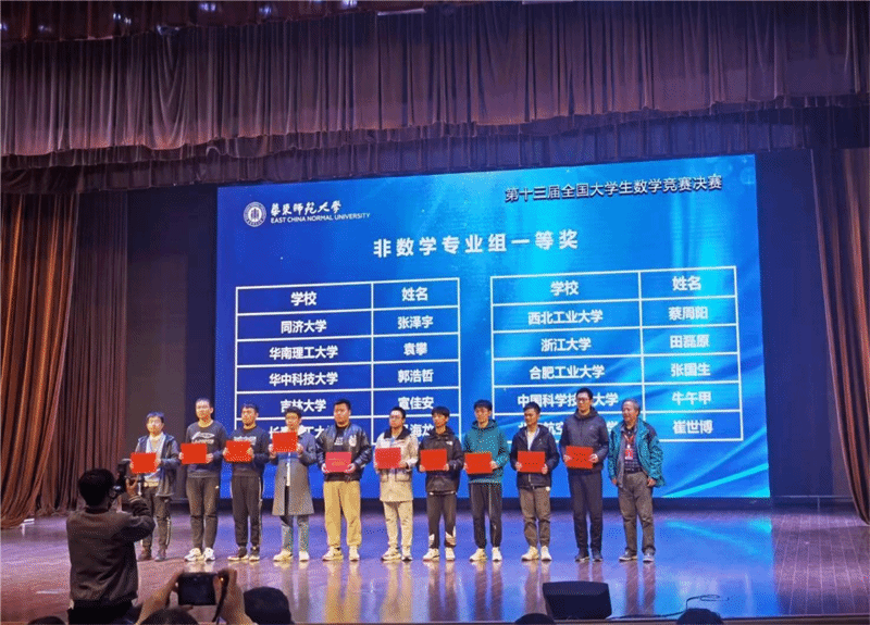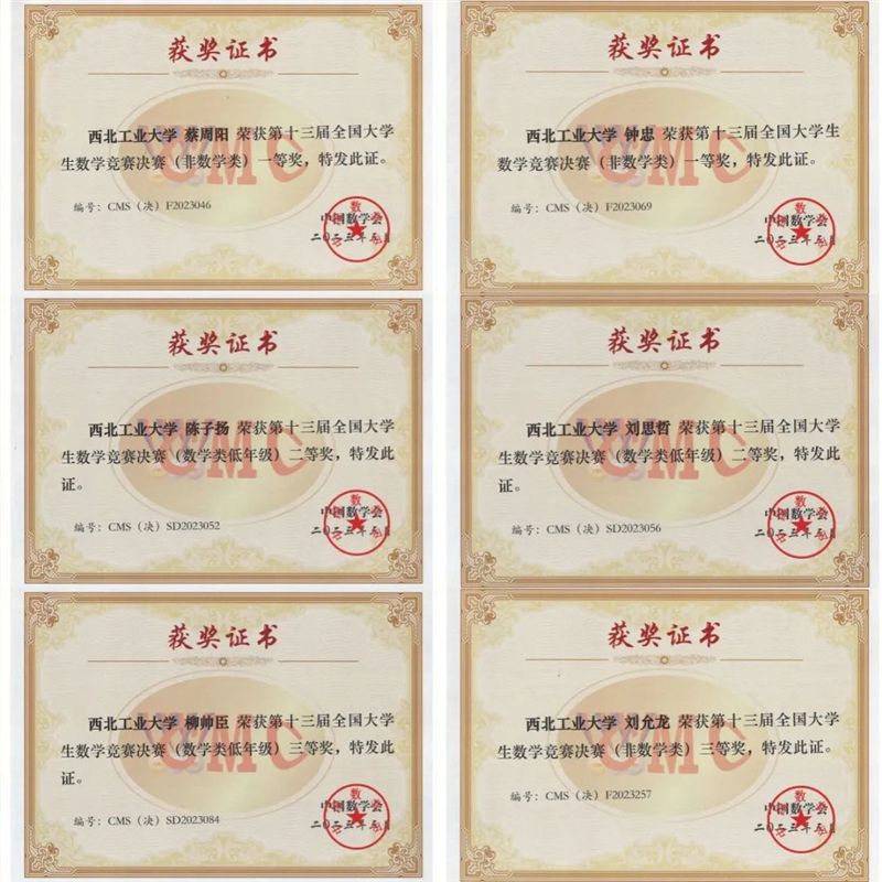 其中,软件学院蔡周阳和航天学院钟忠双双获得非数学专业组全国一等奖;数学与统计学院2020级本科生陈子扬和刘思哲是第一次参加比赛,便以陕西赛区第一名和第二名的成绩,摘得数学专业组全国二等奖。