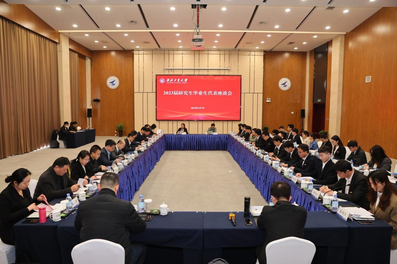 座谈会上,毕业生代表踊跃发言,现场气氛温馨热烈,同学们深情回顾了在西工大校园的美好时光,分享交流了在校期间的成长与收获,言语间充满了对母校、恩师的感激、不舍与祝福。他们结合自身的学习生活体会,对母校的未来发展积极建言献策,就学校的综合素质教育、国际学术交流、职业规划与择业指导、校园文化建设、创新创业教育、后勤保障等方面提出了意见和建议。大家纷纷表示,无论是继续深造还是走上工作岗位,在未来的人生战场上,他们会将“公诚勇毅”校训和“三实一新”校风作为追求卓越的行动自觉和内生动力,踔厉奋发,奋勇拼搏。