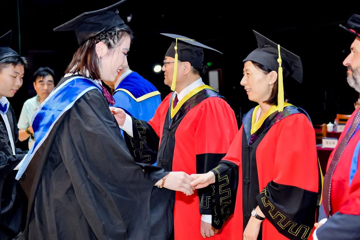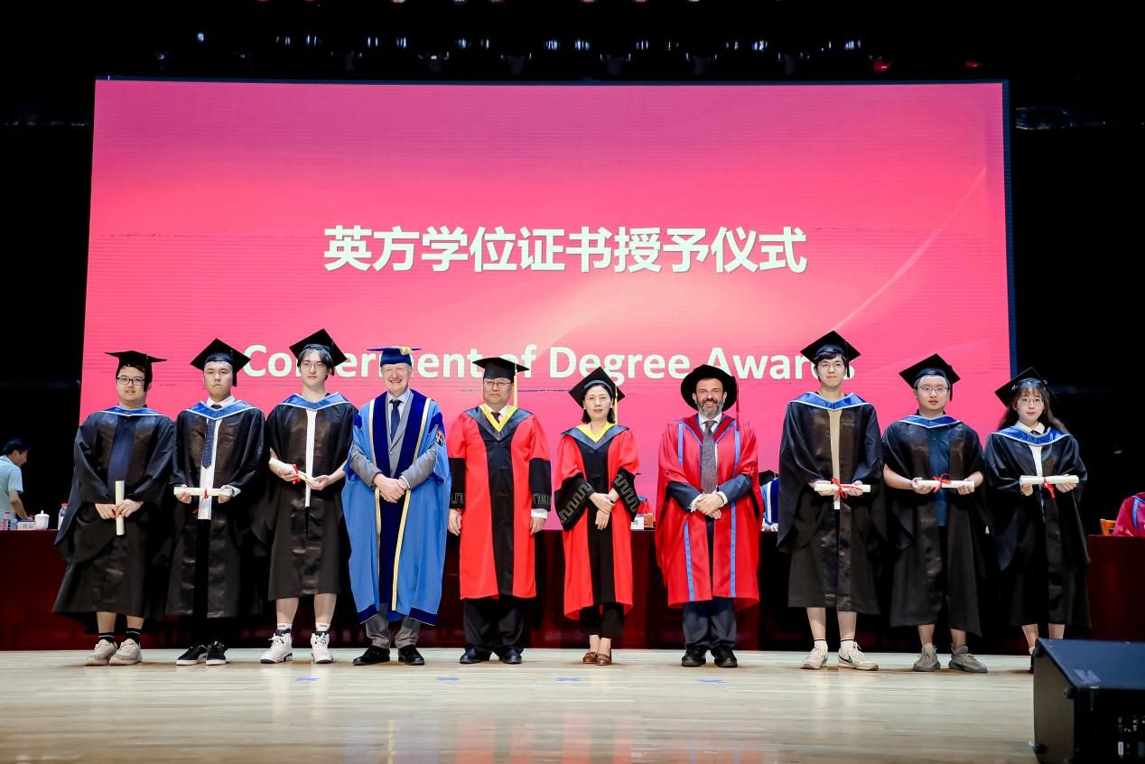 最后,在中英双方母校的认可和祝福下,代富平书记宣读本次毕业生名单和学位等级。宋保维教授、Colin Bailey教授、范晓丽教授和Gabriel Cavalli教授共同为毕业生颁发毕业证书、拨穗。