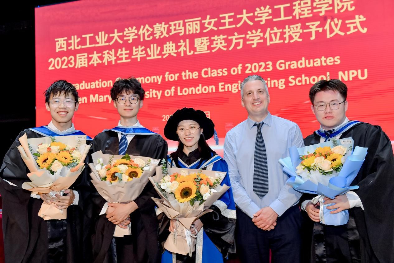 在两校的共同努力下,2023届毕业生表现优异。冯卓雅和江宇轩获得QMUL校长奖;冯卓雅获得JRI最佳论文奖;侯思宇、王雨寒获得最佳进步奖;于川获得IOM3青年演讲赛一等奖。李亮辰、李璨、邱泉润获陕西省优秀毕业生称号。王文副校长、张艳宁副校长分别为优秀毕业生颁发荣誉证书,对他们在学业中取得的优异成绩表示充分肯定。