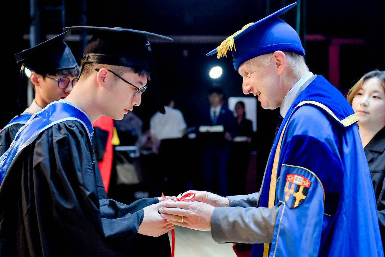 伦敦玛丽女王大学校长Colin Bailey教授在毕业贺词中表示,能第一次亲临典礼现场和同学们一起庆祝圆满毕业非常高兴。他对全体QMES教职员工、学生及其亲友表示感谢。他指出,合作、沟通与协作是克服全球共同挑战的关键因素。玛丽女王工程学院始终坚持融合中英双方高等教育的精髓,为学生提供优质的国际化本科教育。他强调,作为中外合作办学模式下成长的学生,大家拥有独特且强大的复合型能力,希望同学们在中国或未来工作和生活的地方,为社会发展做出积极贡献。在未来的几年中,伦敦玛丽女王大学将和大家保持联系,帮助大家充分利用伦敦玛丽女王大学校友会的资源,通过全球校友网络,建立新的联系,持续发展和提升职业生涯。