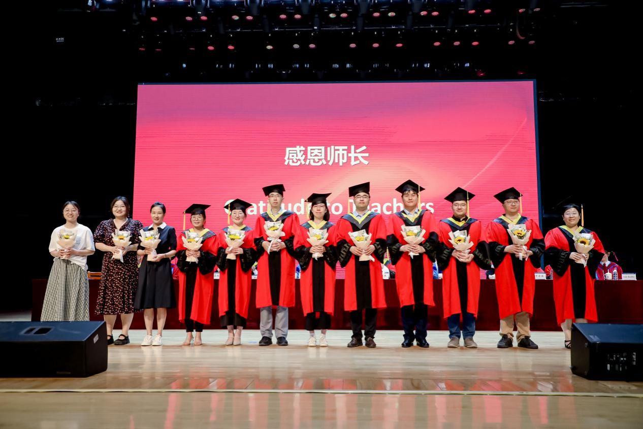 山高水长有时尽,唯有师恩日月长。四年里,恩师以坚定的信念、高尚的品德、扎实的学识和仁爱之心教导学生们踔厉奋发,勇毅进取。今日毕业之时,同学们也为敬爱的老师们送上最真挚的祝福。毕业生代表为史学涛、梁瑾、陈娟、刘怡、王鹏、庄强、党阿磊、李俊杰、于涛、刘佳、刘珂佳、李阳阳等老师献上鲜花,感谢老师们四年来的关怀与教导,感谢他们为学院人才培养工作做出的贡献。