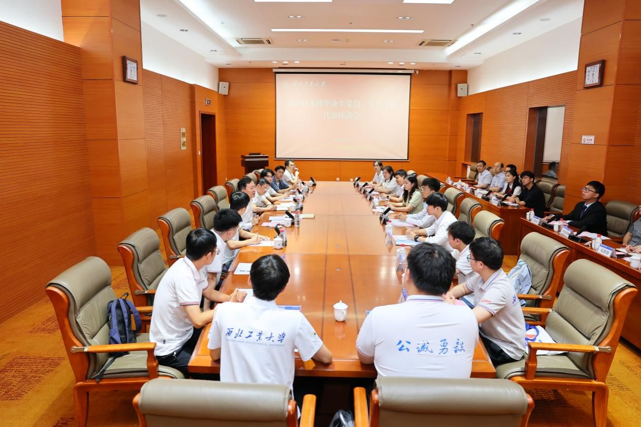 西工大新闻网7月6日电(文字 薛杨 赵珍 摄影 卢迪 司哲)7月5日下午,taptap点点2023届本科毕业生党员、学生干部代表座谈会在长安校区召开。校党委书记李言荣,党委常委、副校长詹浩及相关职能部门负责人,与来自各学院20位本科毕业生党员、学生干部代表亲切交流。座谈会由李言荣主持。