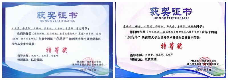 研究院积极树立勇于创新突破的科研价值导向,鼓励学生参与各类学科竞赛,取得优异成绩。在“互联网+”“挑战杯”等高水平学科竞赛获奖58余项,学生参与覆盖率达60%,获国家级奖18项;2022年“挑战杯”大学生创业计划竞赛荣获省赛金奖1项(全校仅7项),也是全校唯一晋级国赛项目,获全国银奖;2022年第八届中国国际“互联网+”大学生创新创业大赛获省赛金奖2项,其中1项晋级国赛获银奖(企业产业赛道)(全校仅2项);2022年获评“优秀研究生标兵”“优秀模范导学团队”“研究生模范班级”,实现研究生培养个人和团体荣誉称号“大满贯”。研究院在学校2022年绩效考核中获评“研究生人才培养”优秀单项奖。2023年“挑战杯”陕西省大学生课外学术科技作品竞赛“特等奖”两项(全校仅8项)。