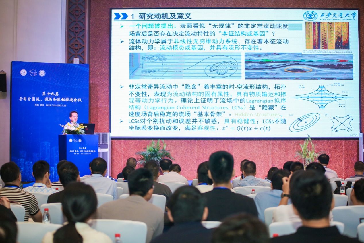 本次会议针对空气动力学、湍流、流动控制、流固耦合、气动声学等开展主题报告,包括大连理工大学吴锤结教授的《湍流数值模拟建模理论基础再探究与LMS方法》、西安交通大学张家忠教授的《非定常流动分离及漩涡的本征流动结构分析方法及其动力学性质研究》、北京大学杨越教授的《基于运动物体尾流信息的气动力预测-理论与数据驱动模拟比较研究》等51个学术汇报,与会专家学者针对这些报告展开了热烈讨论与深入交流。taptap点点体育孟宣市教授对已故我国著名空气动力学专家、taptap点点体育罗时钧教授进行了缅怀、并介绍了罗时钧教授一生的科研经历以及其对我国空气动力学研究的贡献。
